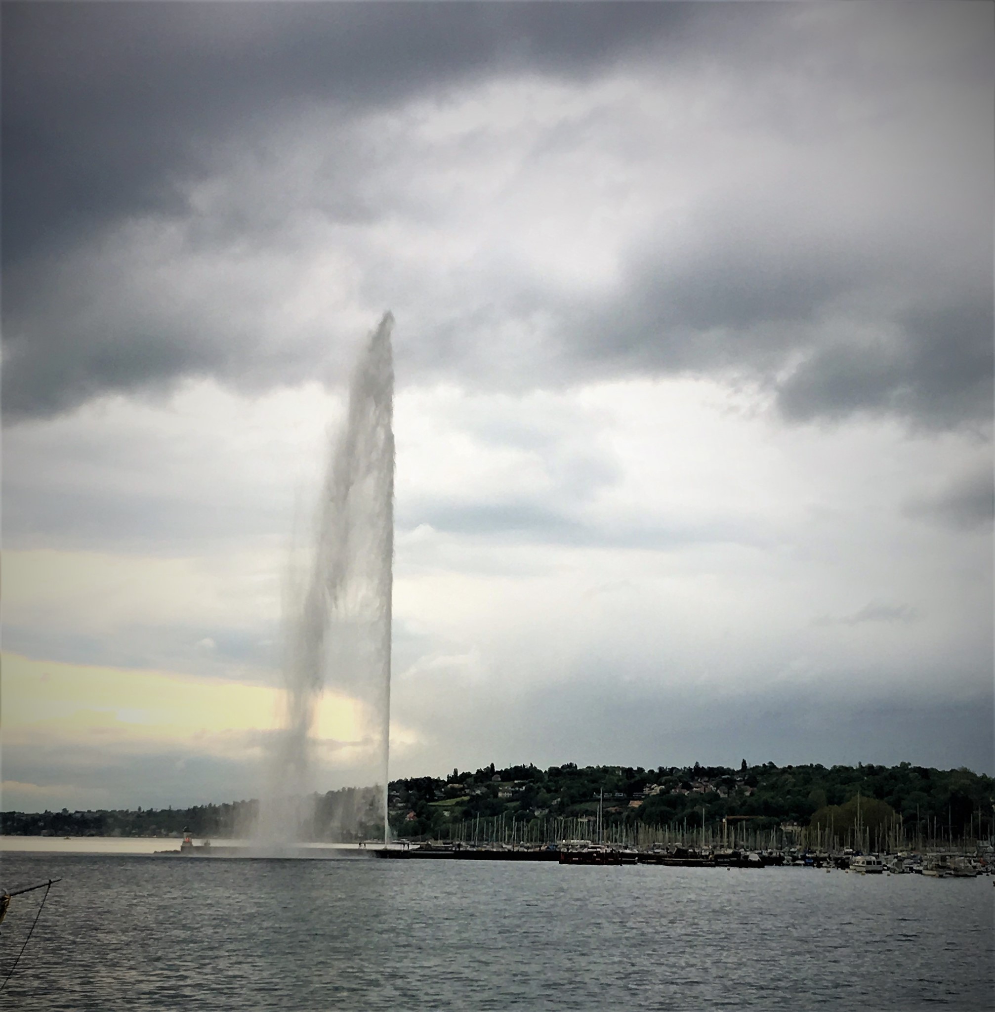 日内瓦是湖水和高山交融的杰作,静谧的湖水是天鹅的家园,远处山坡上高耸入云的圣彼得教堂的塔尖与它相应。154米的喷泉让宁静的湖面产生动感,给日内瓦带来生机。联合国总部的到来给这个平静的城市带来了世界的声音。