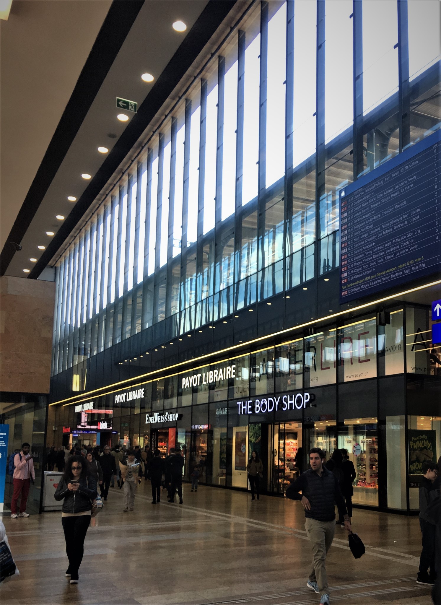 这就是日内瓦火车站内部,商店林立,车次繁忙,非常井然有序。