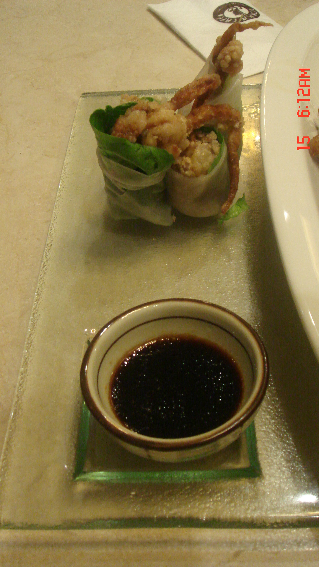 脆蟹。做的很精致,蟹当然是很新鲜的不用说,用菜叶包裹后再用水晶皮包在最外层,口感颜色兼备。