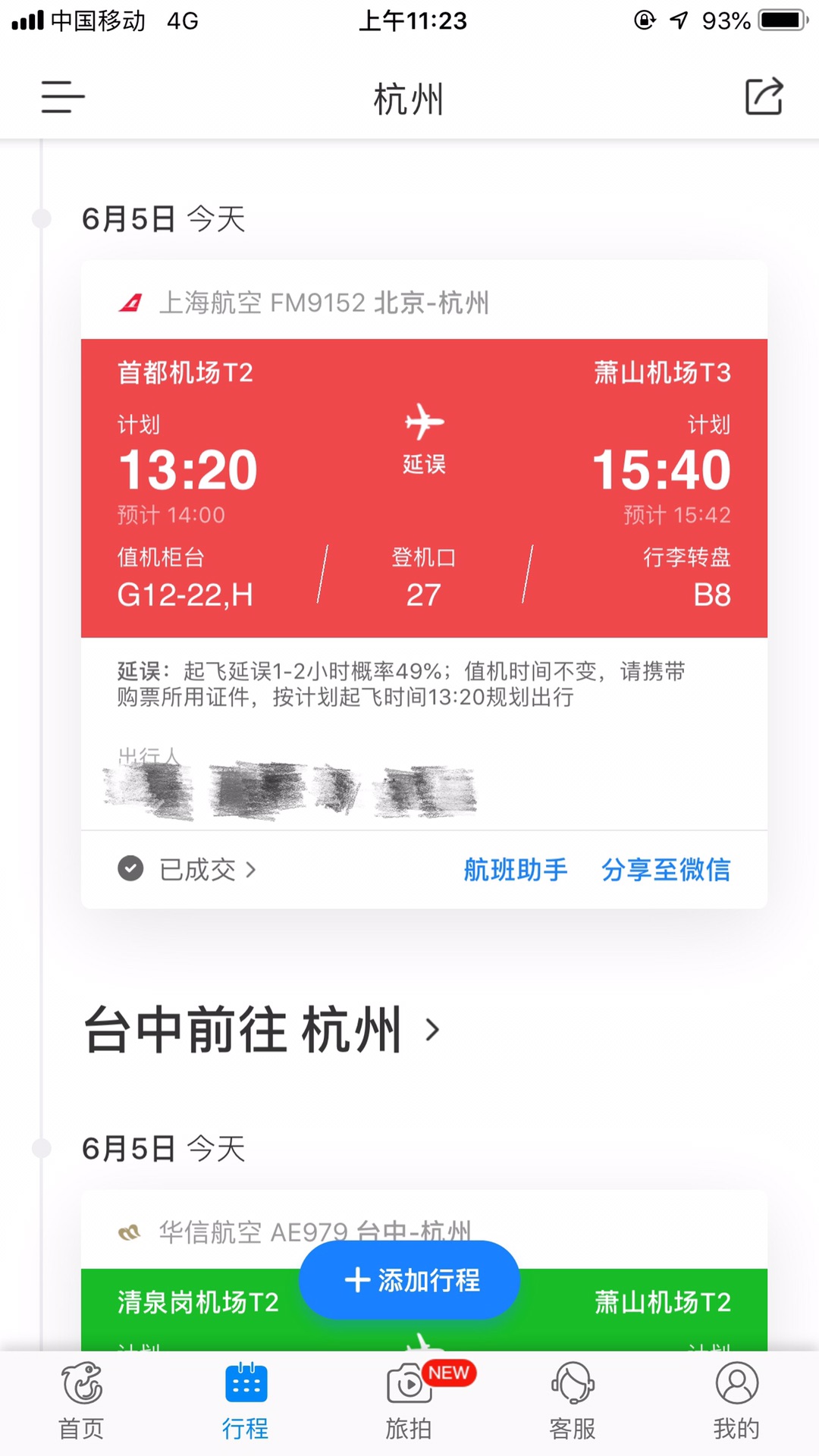 。托运完行李,被告知又要延迟,开始有点担心了,原计划我们要赶在阿嬷之前达到杭州的,心理还是有些着急了。
