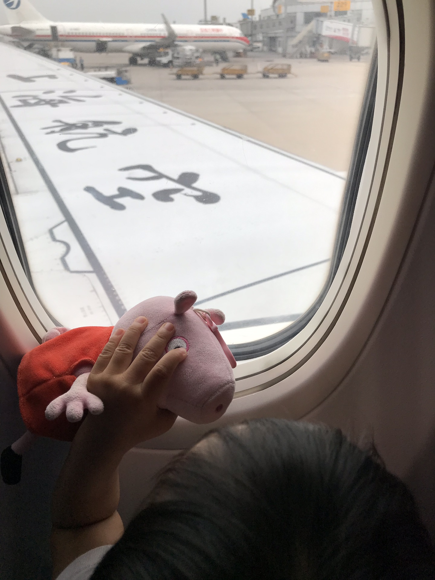 终于可以登机了,阿嬷的飞机也晚点了,算了一下,还是我们先到杭州。