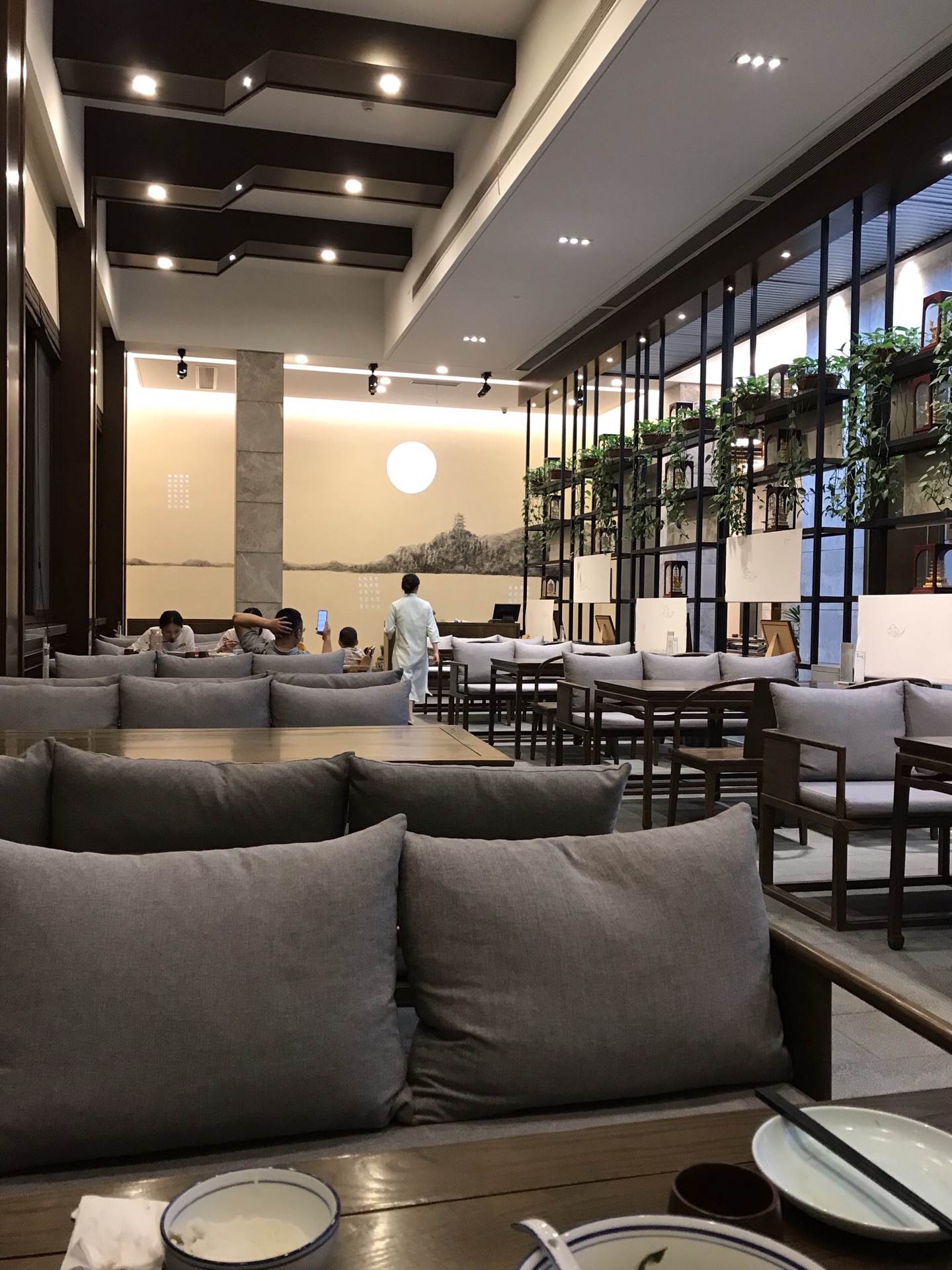 餐厅的环境真的很不错,清新优雅。正面大大的壁画有种站在西湖边的感觉。