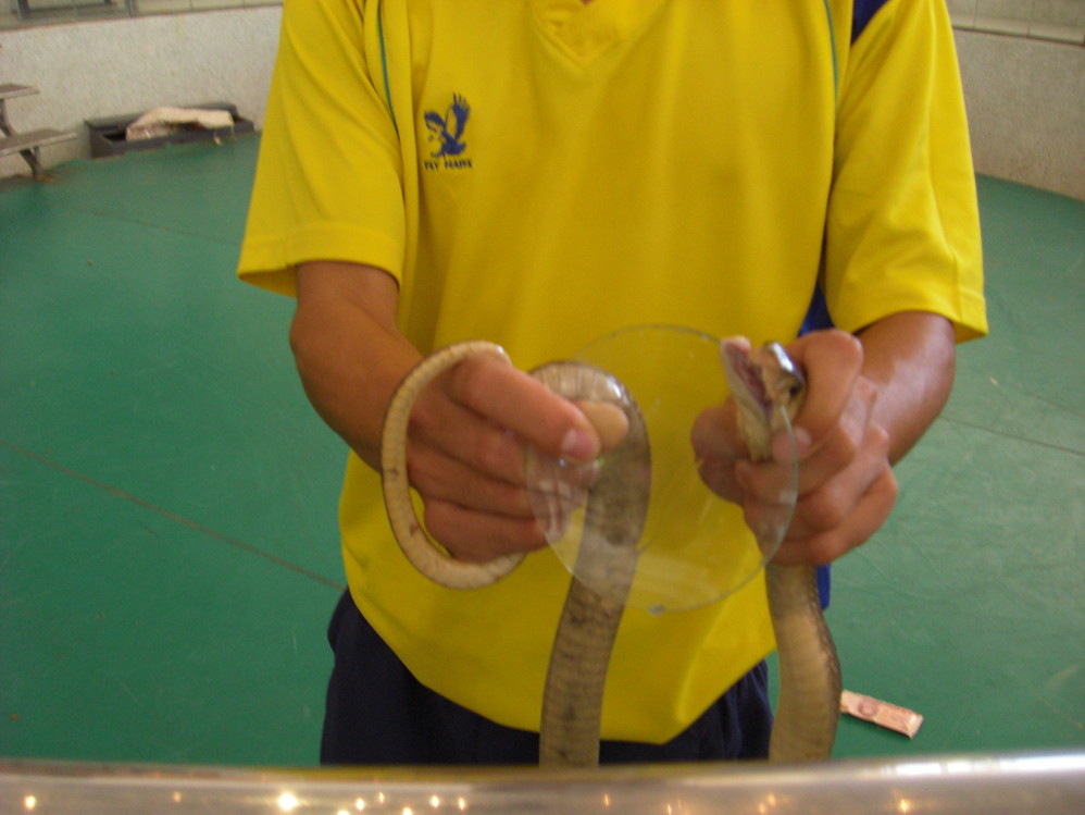 猴子表演不人道。。。不给看了。。眼镜蛇王的王!金刚眼镜蛇!手里这个不是哦,只是只有泰国那有好像,太过用蛇毒作的药很多,在那里的医师讲来就是好比延年益寿的灵丹妙药,摸摸可怜的小蛇...