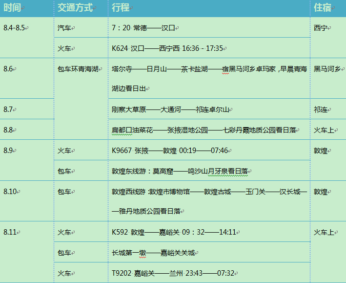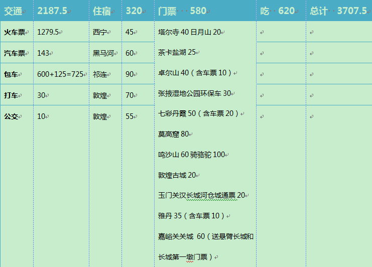 5.日月山景区、张掖湿地公园、敦煌古城、兰州水车博览园较坑爹,可不去。