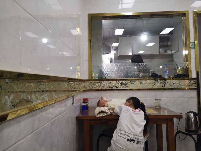 哈哈哈这边带娃娃也随意,店主就这么把娃方放桌上,让老大看着就好