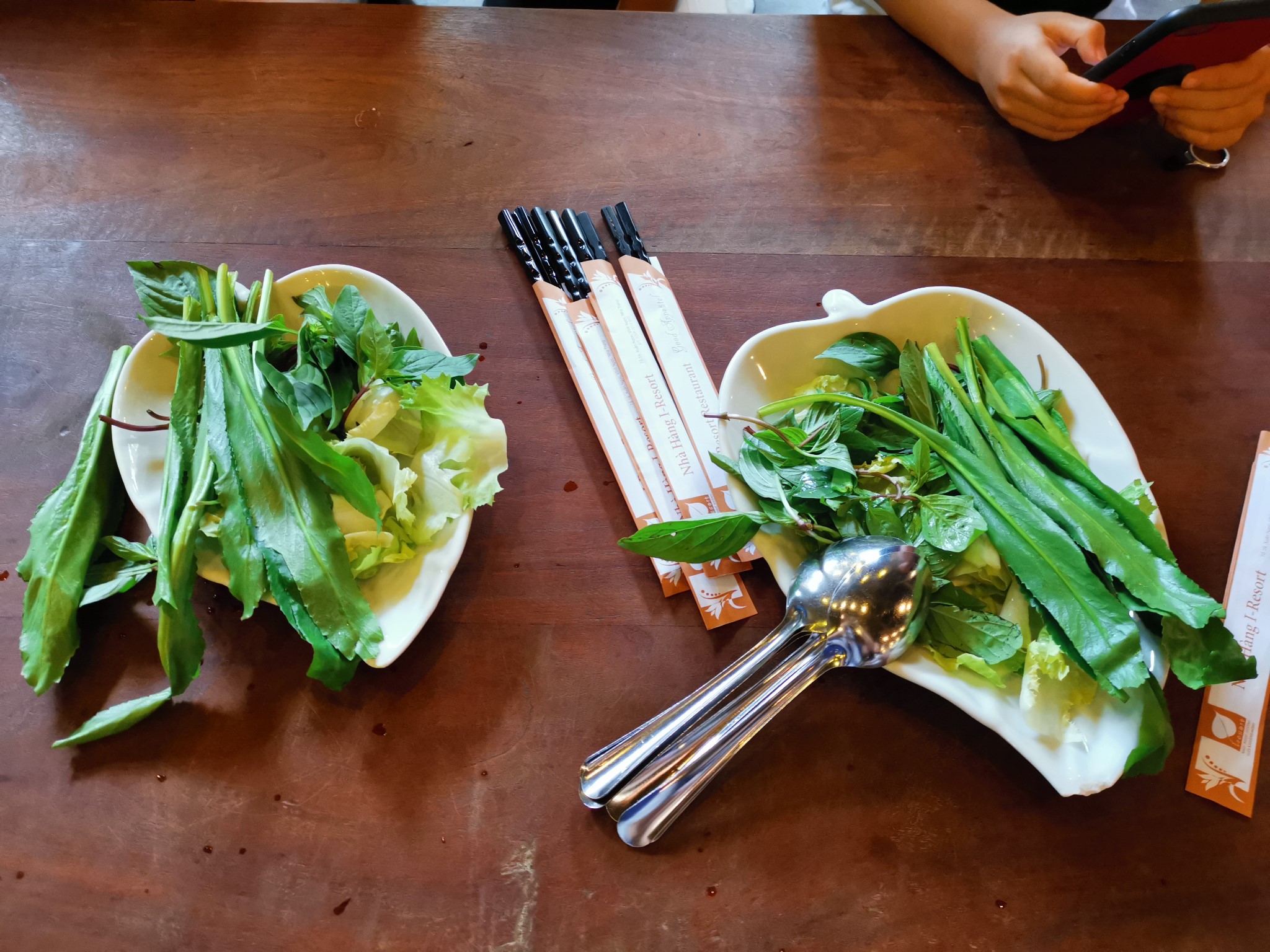 洗完,简餐走起:法棍,越南河粉,一个肉丸汤,不知名的草,半杯咖啡(加不加奶自己定)。作为简餐来说,这个量是可以的,但是他们很随意,我们定的是6个大人的票,法棍大人是1人1个的,如果定的小朋友票,法棍是1人半个的,但是他们给的还是3个半个的,我们提了才给换的,倒不是说要多吃这半个法棍,是觉得不诚信,太随意,还有这个咖啡我真是醉了,只有半杯,其他就都是冰块,在芽庄的几天真是见识到了他们饮料里三分之二基本就是冰块,作为芽庄第一的泥浆浴度假村来说,服务有待提高。当然不定简餐的,也可以那边现场点,不过东西多是不多的。