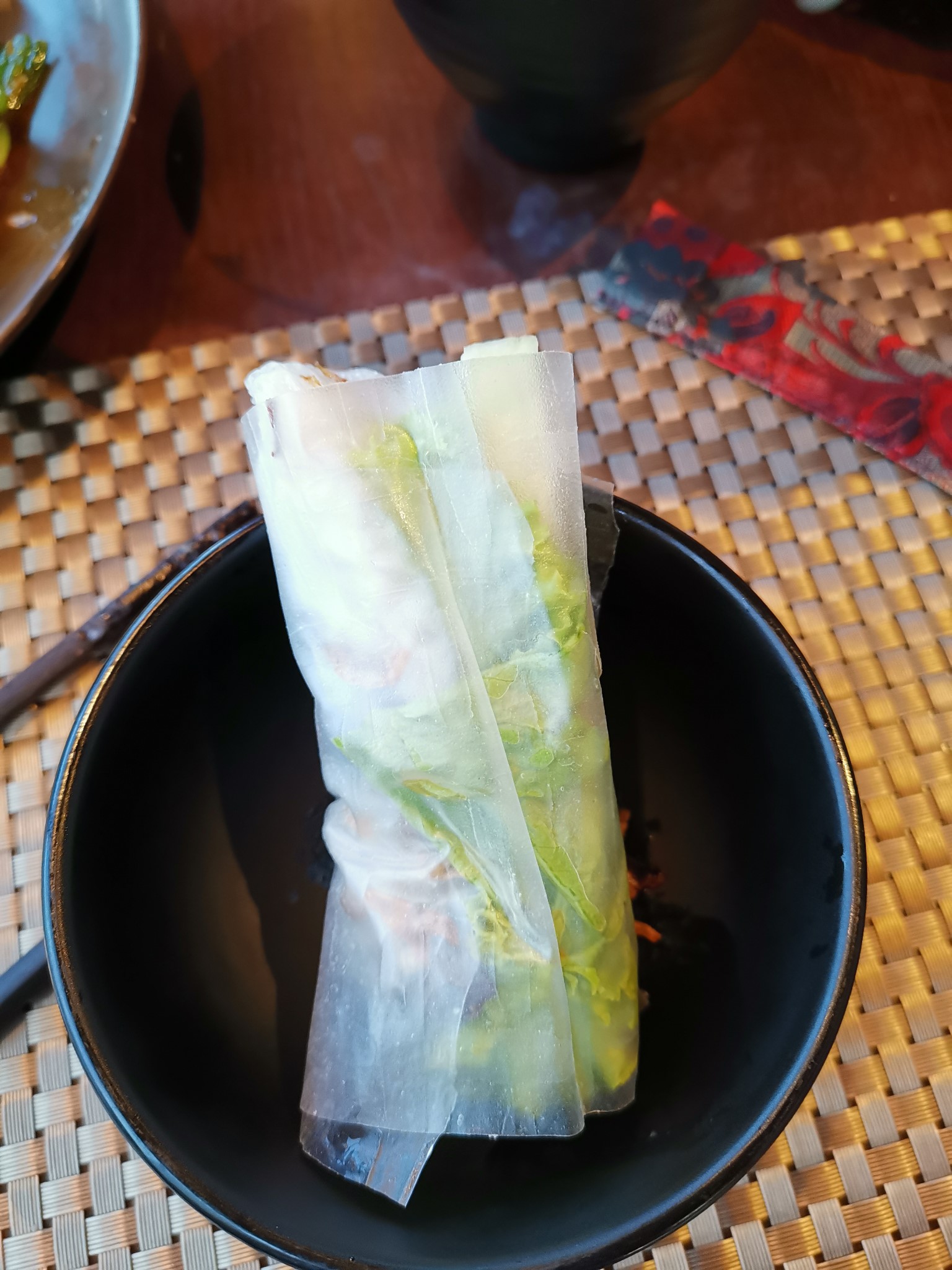 这春卷是自己要哪几种自己包起来的,两个小姑娘很奇怪,居然喜欢光吃这个春卷皮,关键是这个春卷皮不太好咬,像牛皮纸。