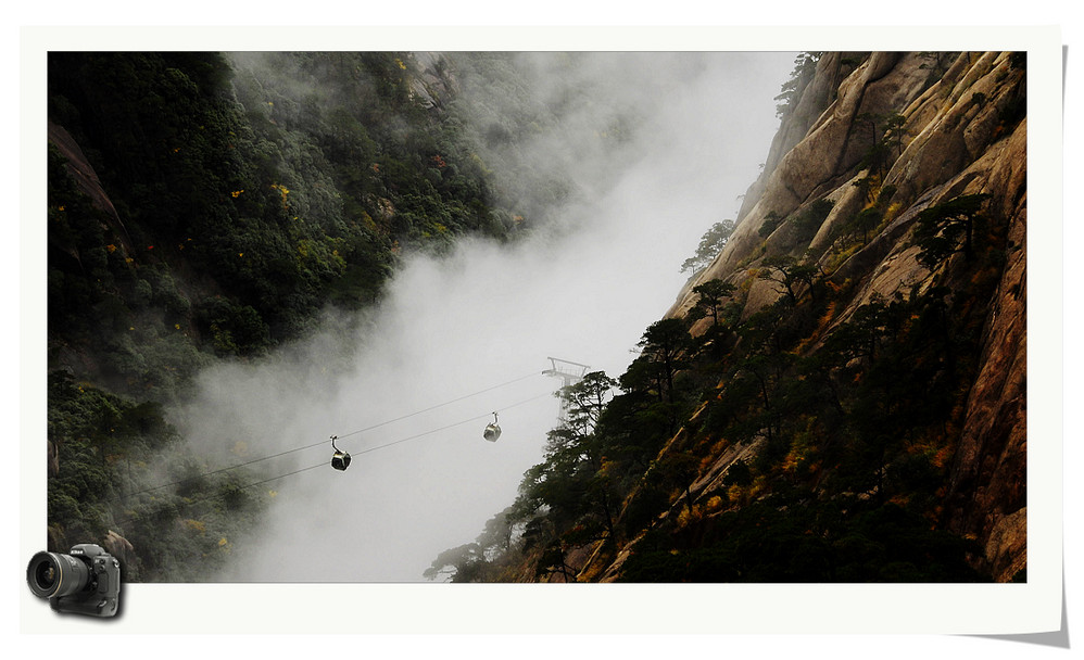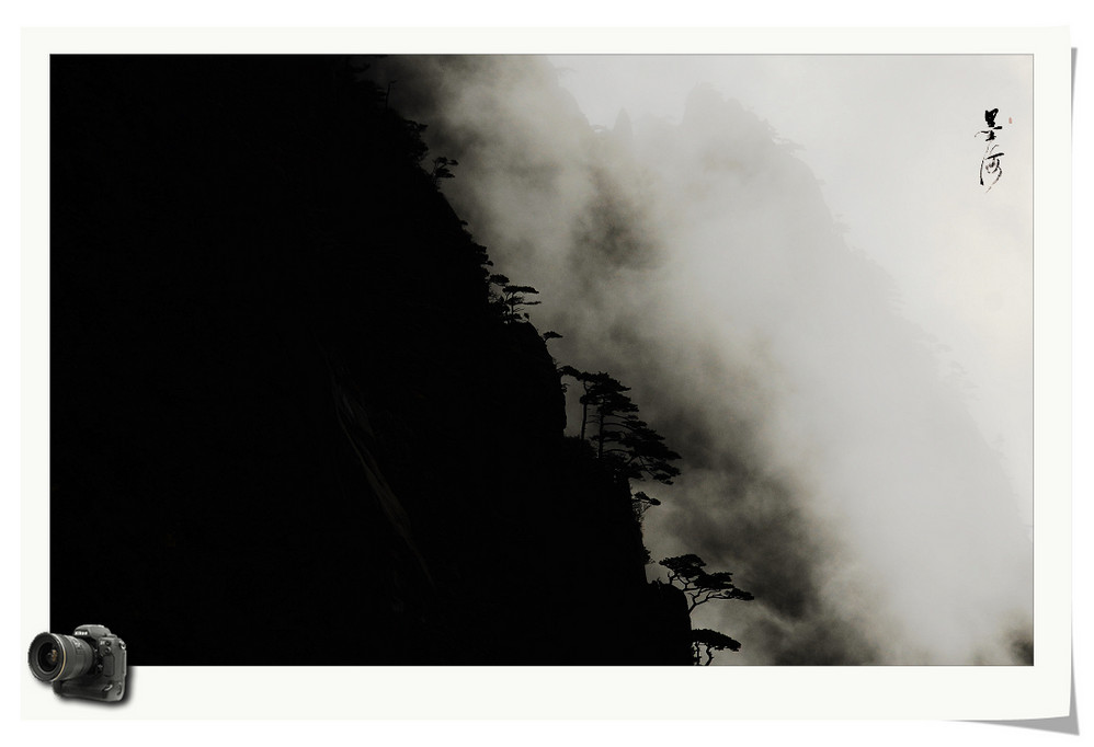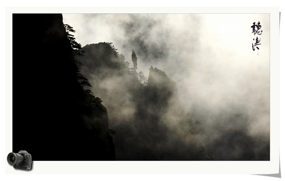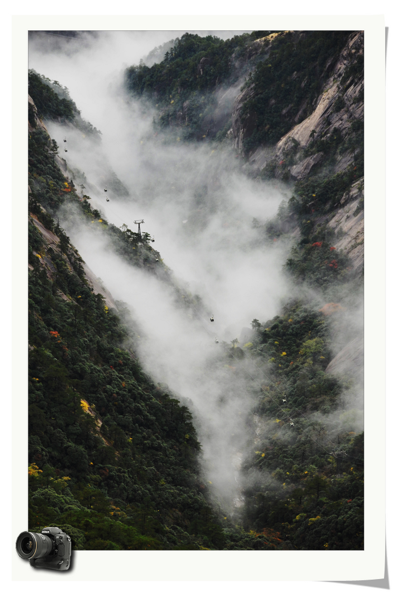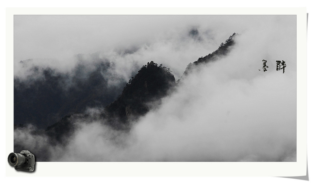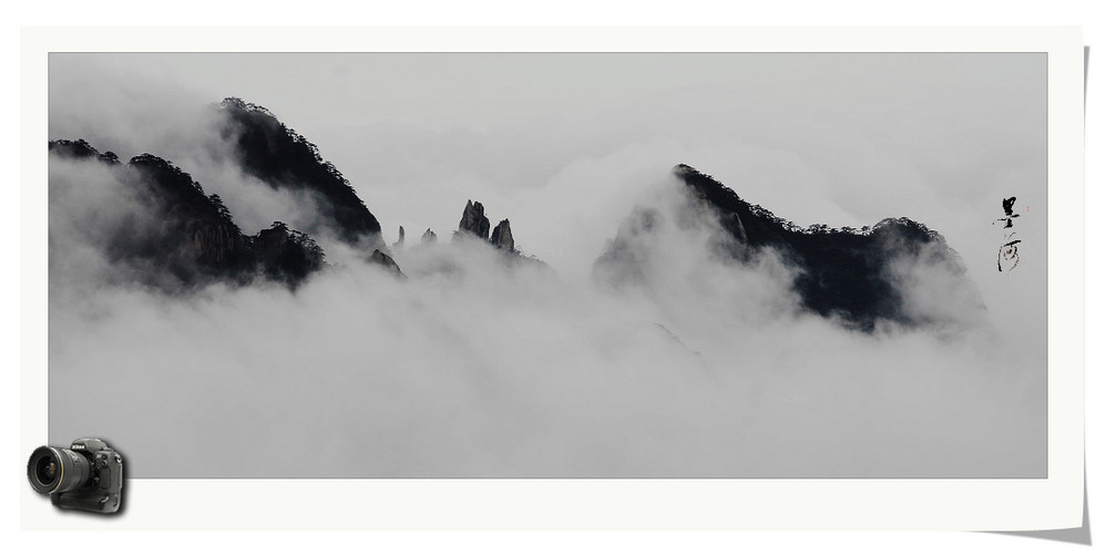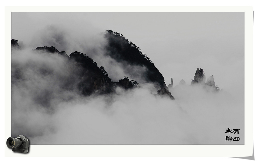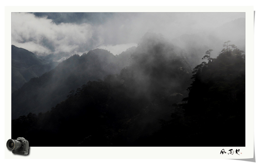 我拍的可是彩色的,一到云雾缭绕就开始迷蒙了,铅华尽失,只留黑白..