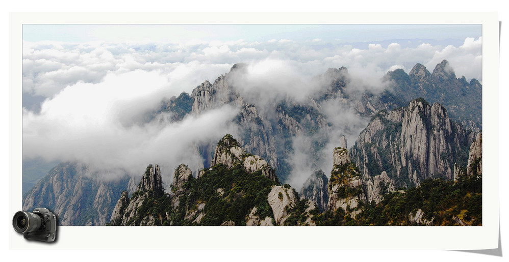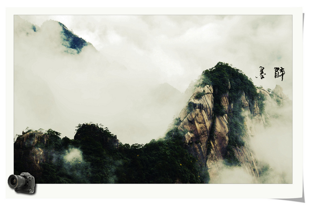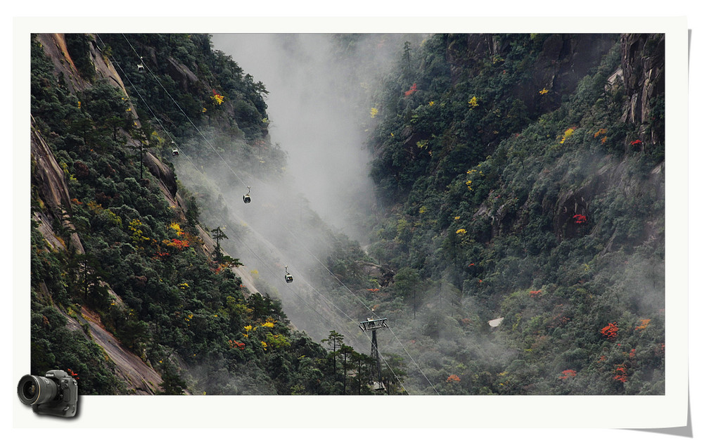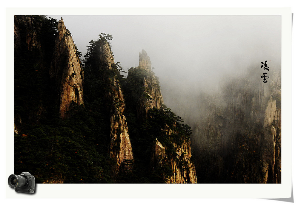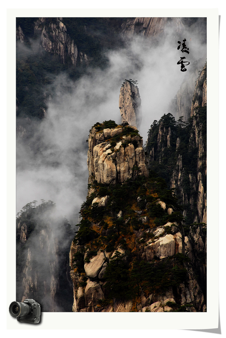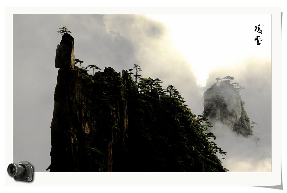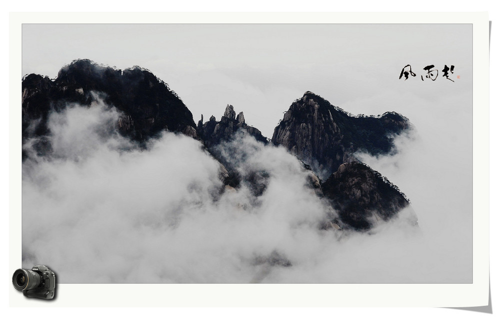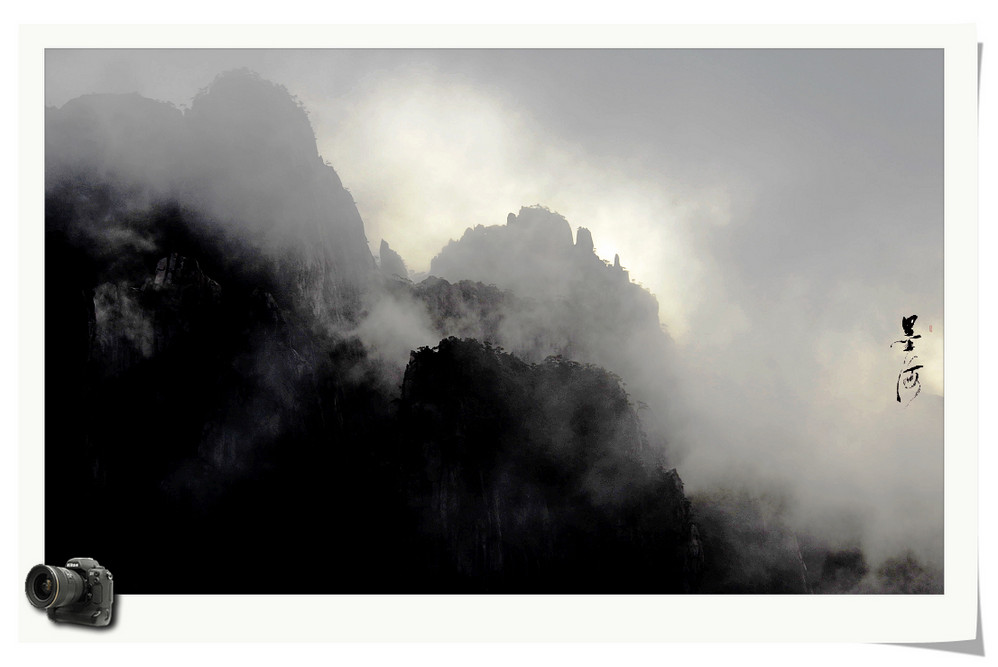 我拍的可是彩色的,一到云雾缭绕就开始迷蒙了,铅华尽失,只留黑白..