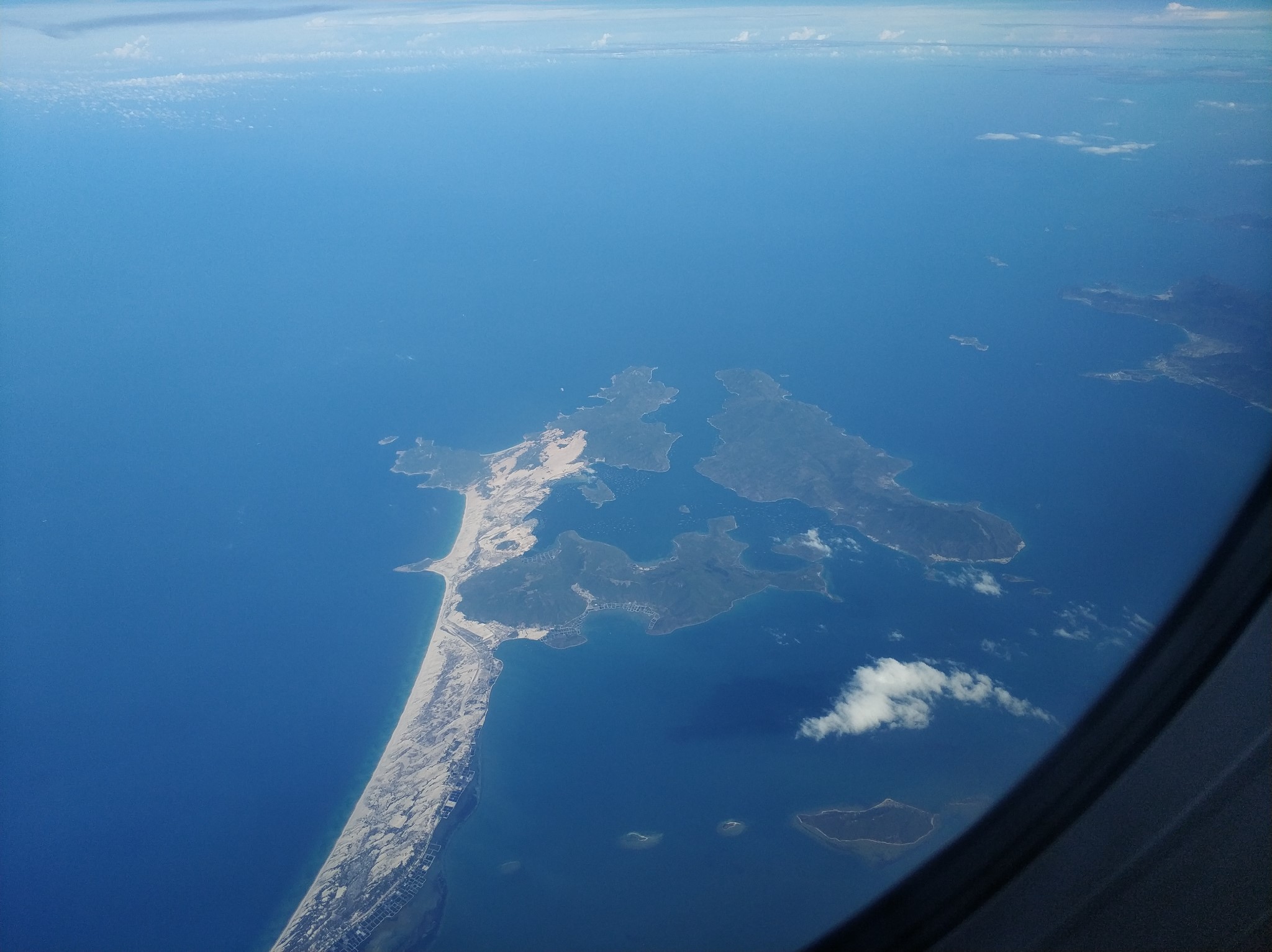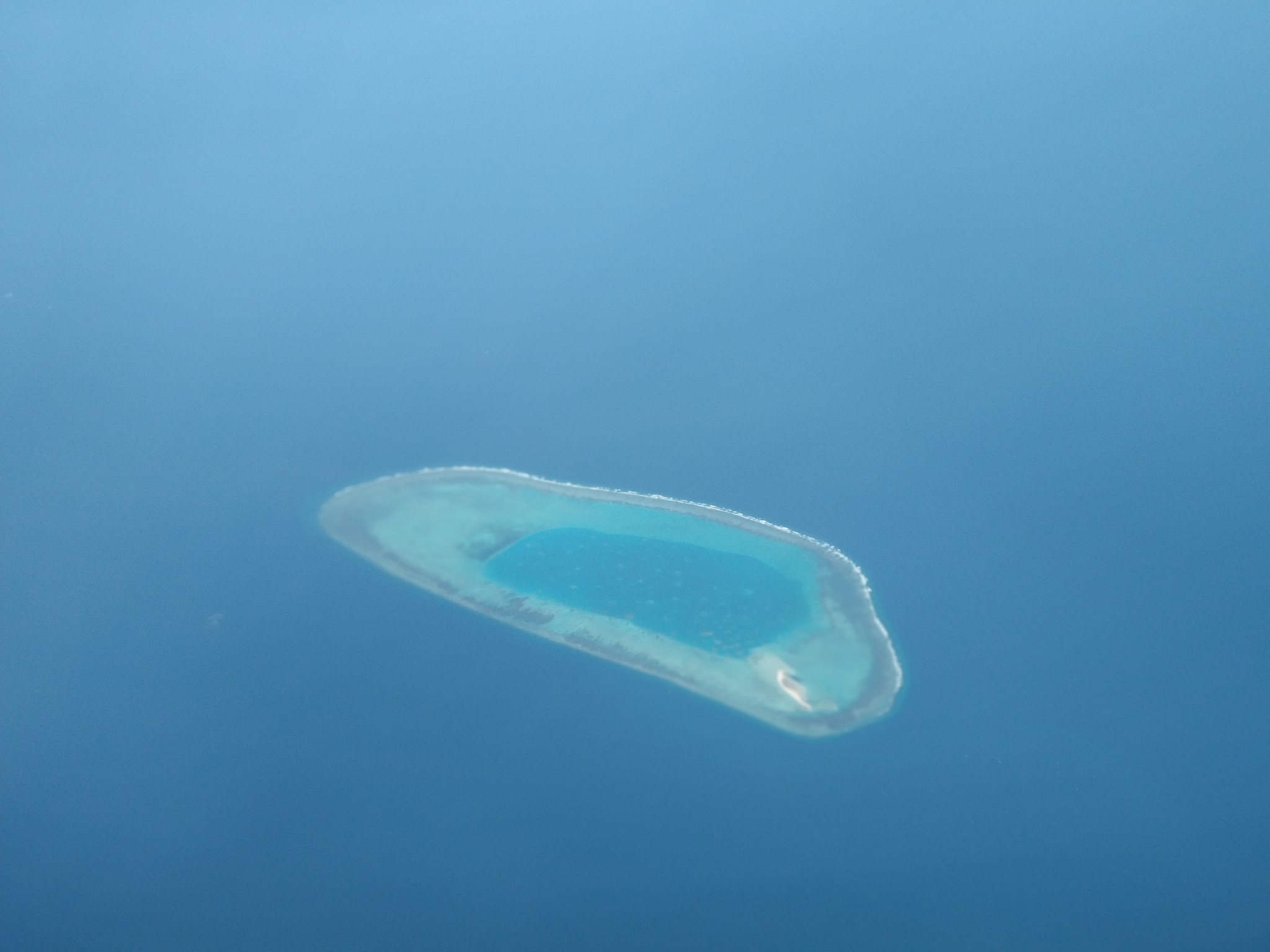 航线经过三沙市,或者有可能是南海的西沙群岛,飞机上远远望下去,非常漂亮。
