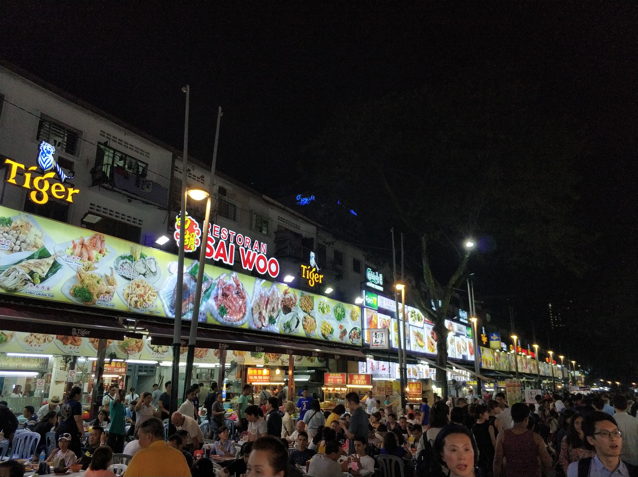 这是阿罗街的夜市,就像国内的大排档。附近有非常出名的新峰肉骨茶。