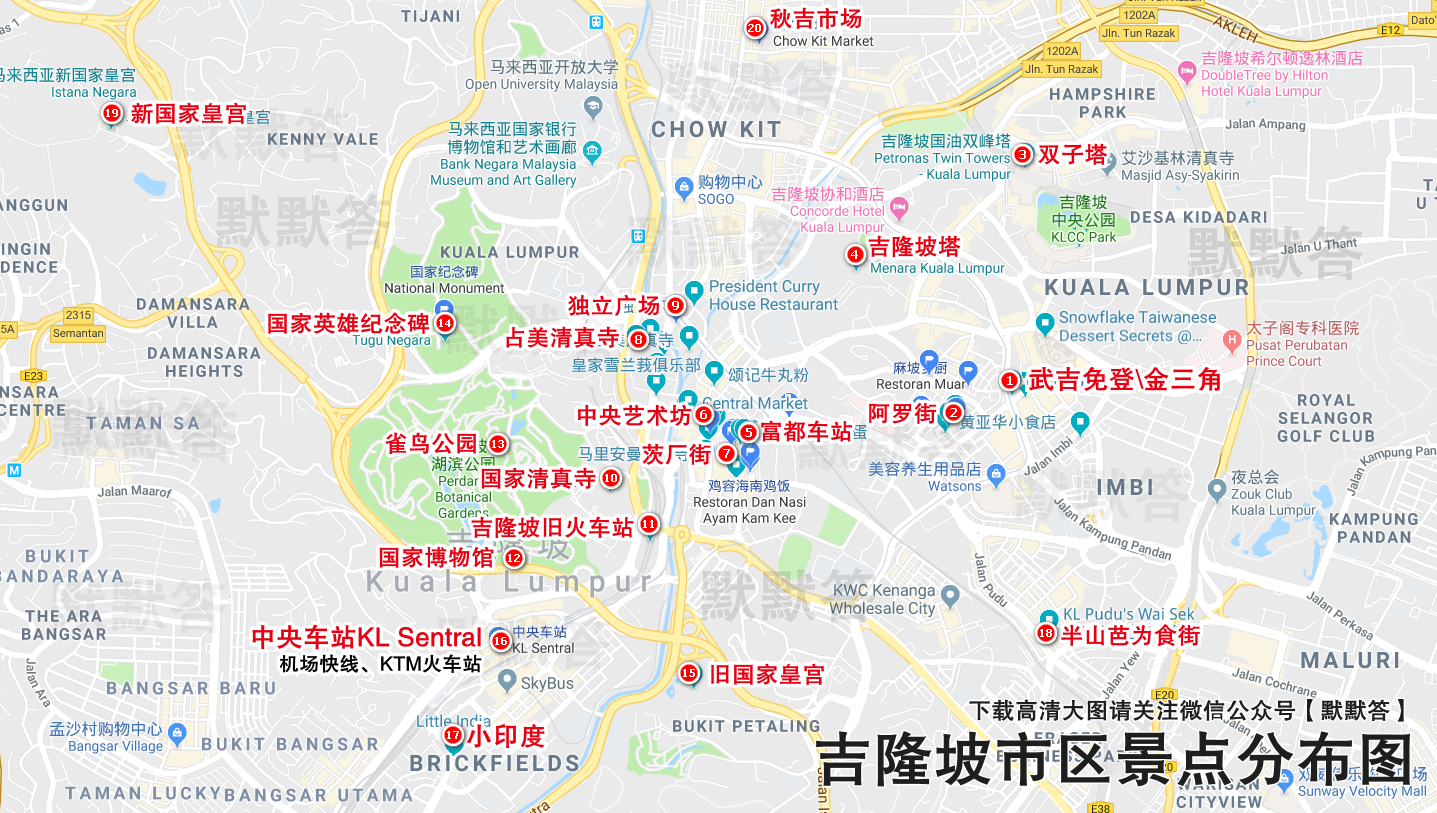 插播张吉隆坡的主要景点图。