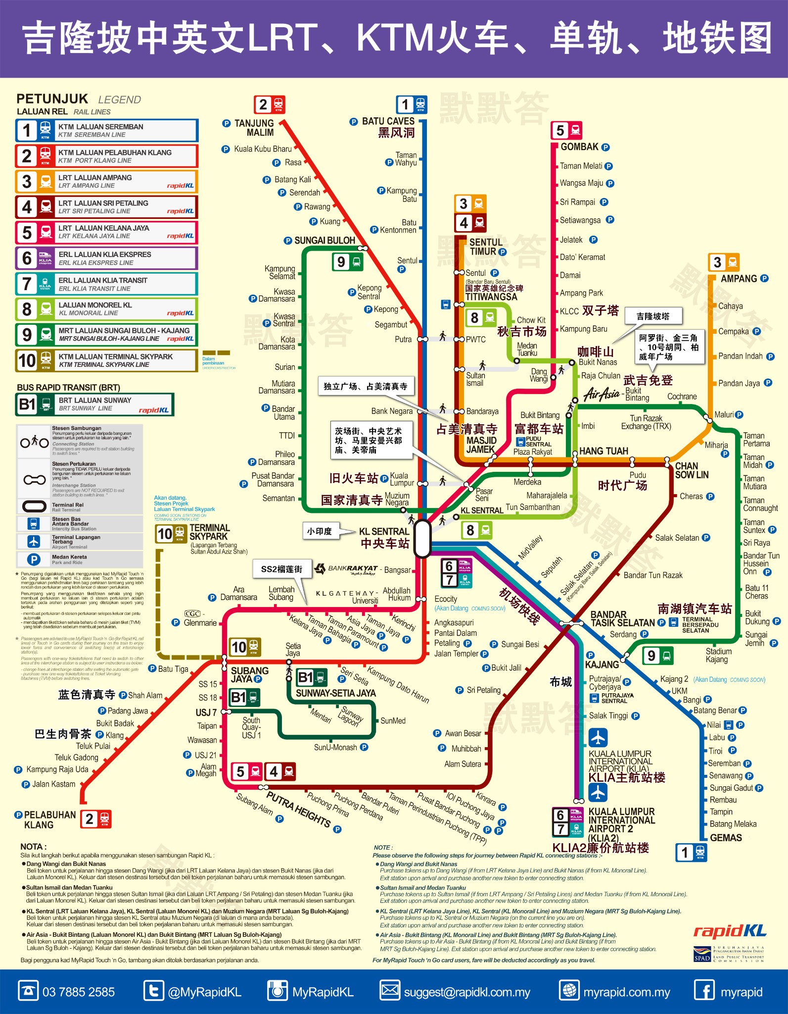 晚上简单逛逛后就直接回酒店休息了。这边先附上吉隆坡的交通地图。这张是2019年最新版的,非常实用。多去问问工作人员,就能搞清楚怎么