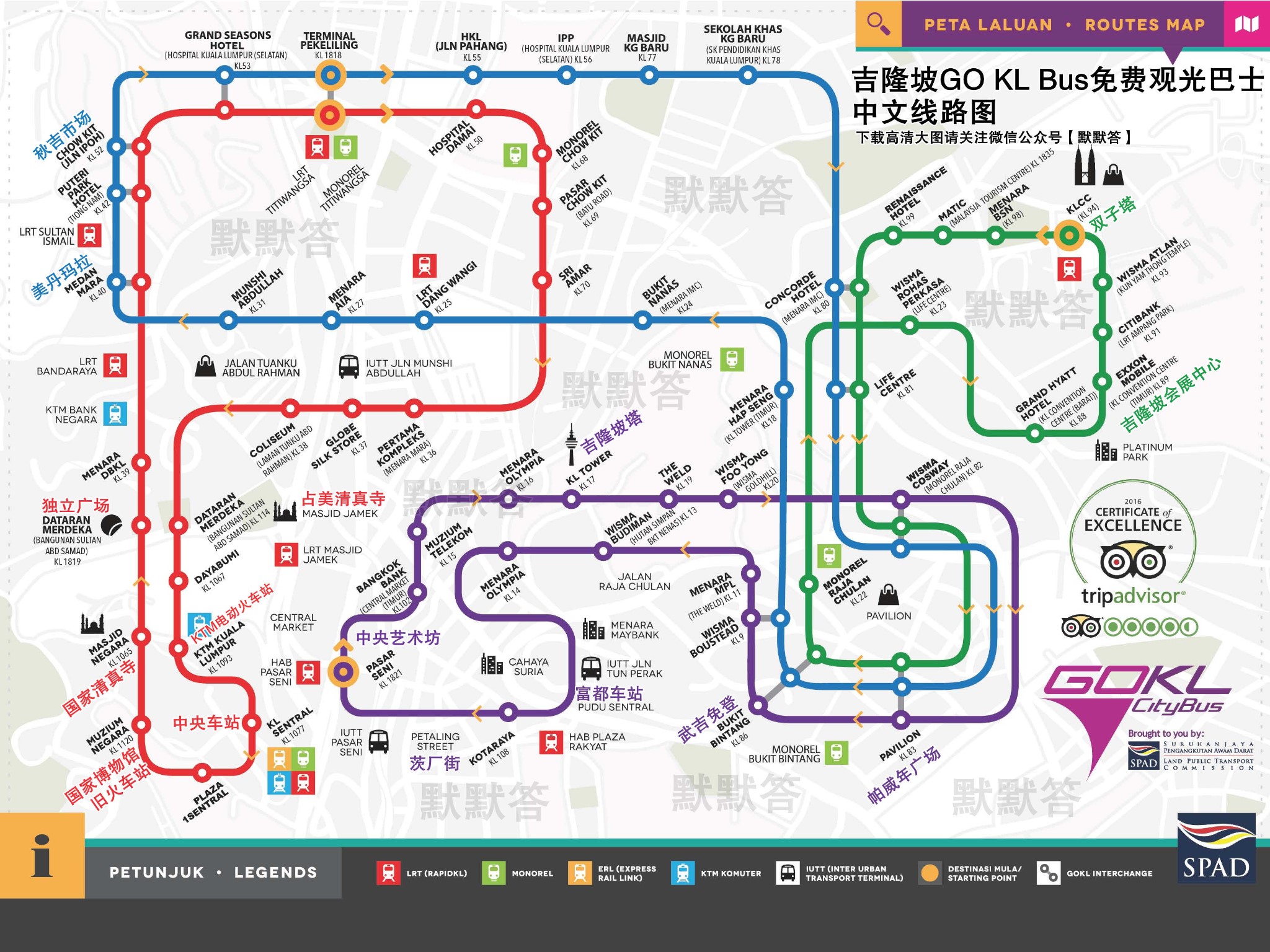 这边还有免费的市区巴士。主要景点主要是红线,车身是粉色的Go KL,车头会写Red Line,主要不用坐错了,否则会绕道很远的地方。