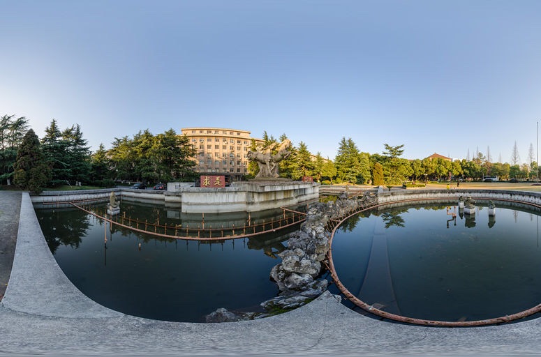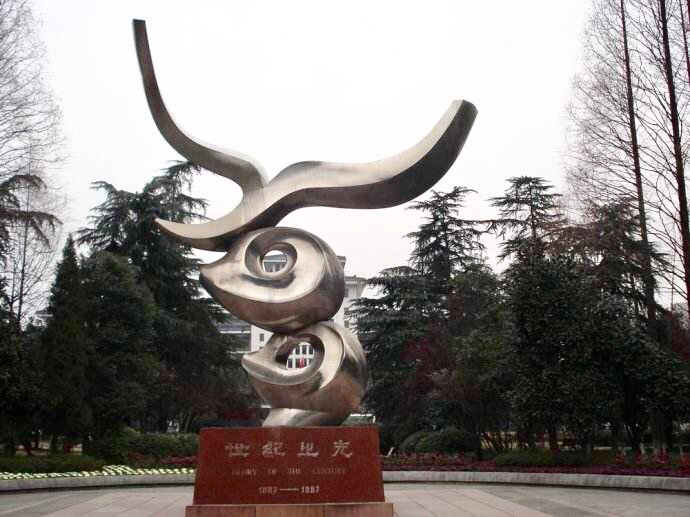 校园内大草坪前标志性雕塑。据说是上世纪六十年代中后期重金建造的。