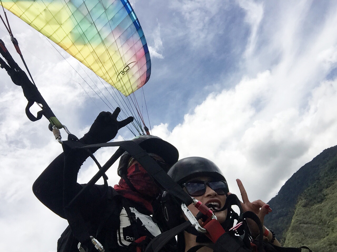 滑伞全程时间才6-7分钟,飞出去那一下有点刺激,飞稳之后就疯狂拍照吧,反正呆在上面除了看风景也没有什么做了,如果什么都不做,这个伞转来转去会慢慢开始觉得头晕想吐的,也是亲测。。。