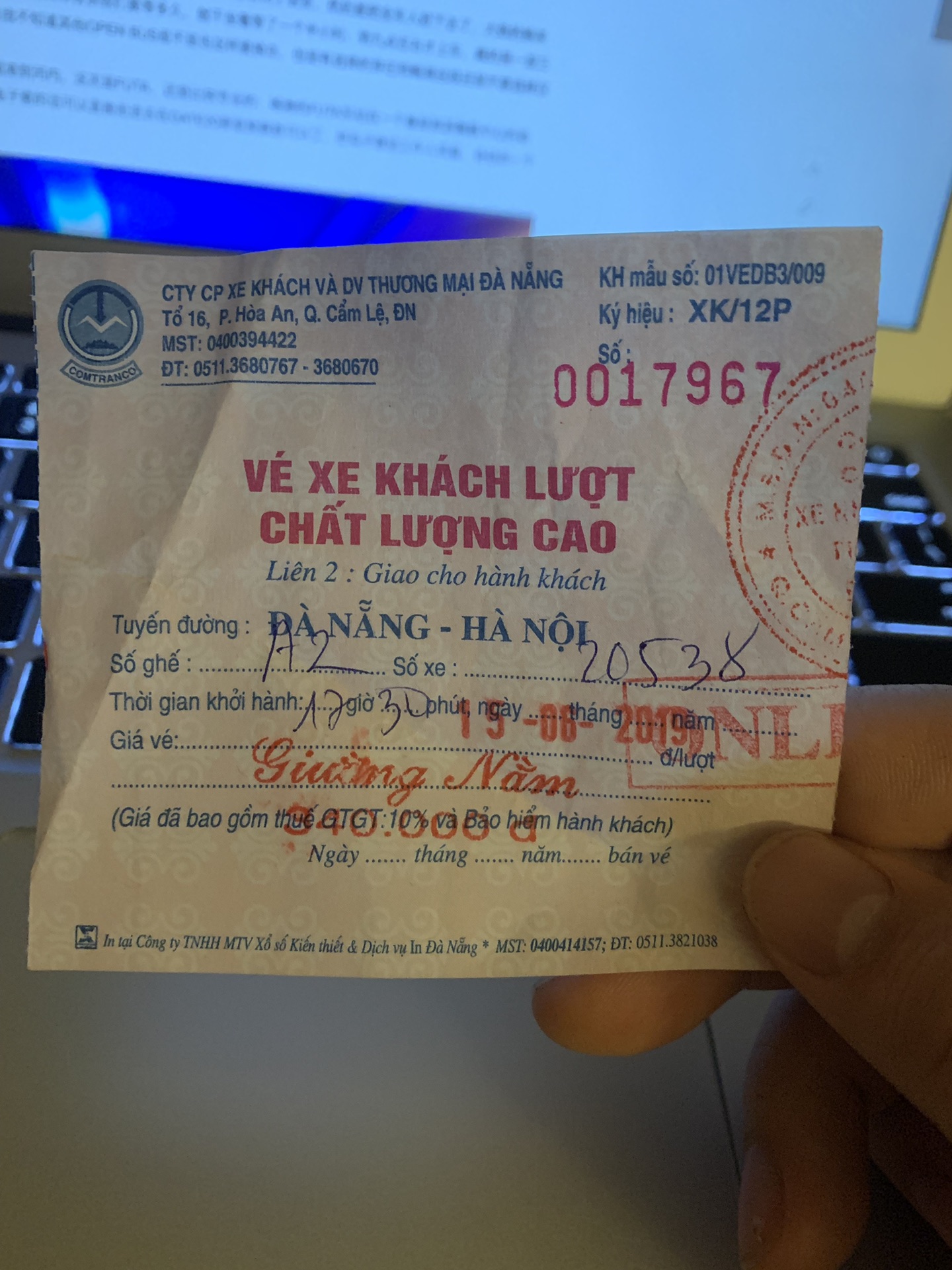 第四程岘港到河内,这次是FUTA,还是比较专业的;岘港的FUTA车站在一个像是旅游集散中心的地方,有电子票的话可以直接走进去在GATE20那里换票就可以了,把电子票给工作人员看,会给你一张纸质票,上面有写座位号、车牌号和发车的时间(车票见下图),这点就比汉咖啡专业,而且车上一个司机一个工作人员,到了凌晨4点多的时候在一个我不知道的什么地方还换班了,上了另外一个司机来开车,这点就比较安全了,但是座位感觉比汉咖啡小一点,腿勉强能否伸直