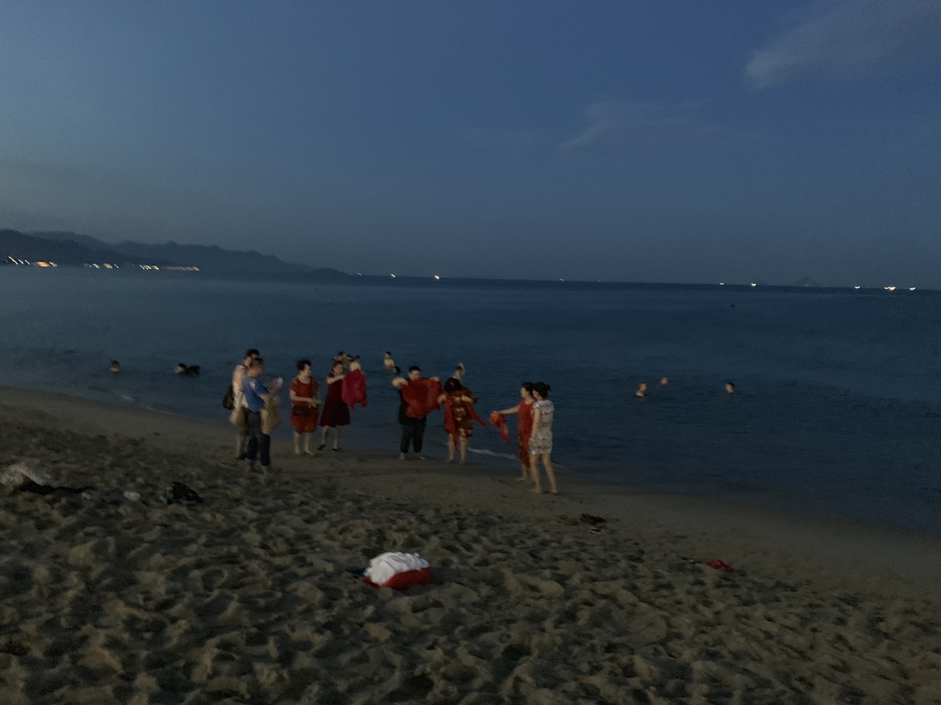 吃完我们就开始饭后消化了,走到芽庄海滩,看到一群带着丝巾凹造型拍照的中国阿姨们,哈哈哈哈哈哈,丝巾真的很重要