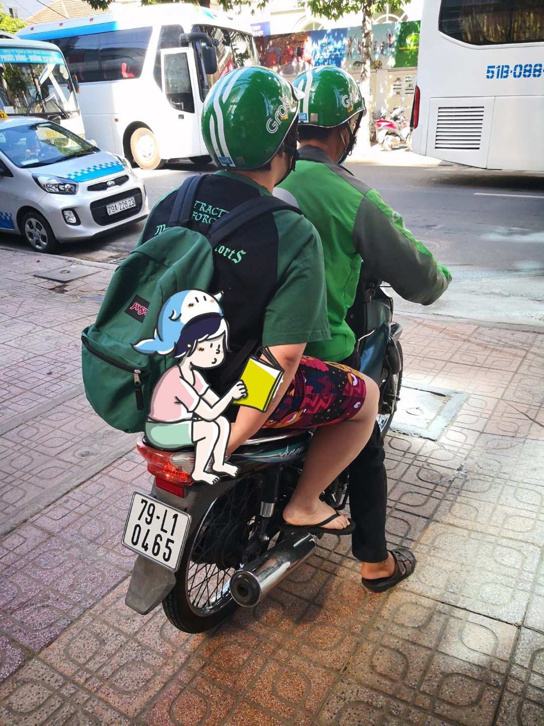 第二天从岛上退了房就回芽庄市区了,用GRAB叫了一把摩托车去景点,刺激