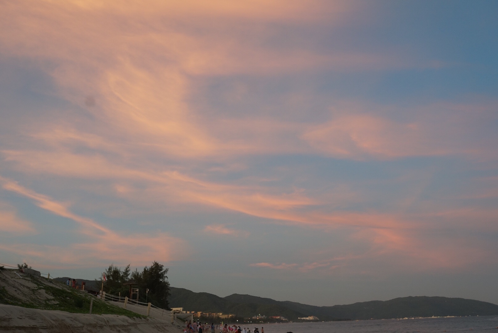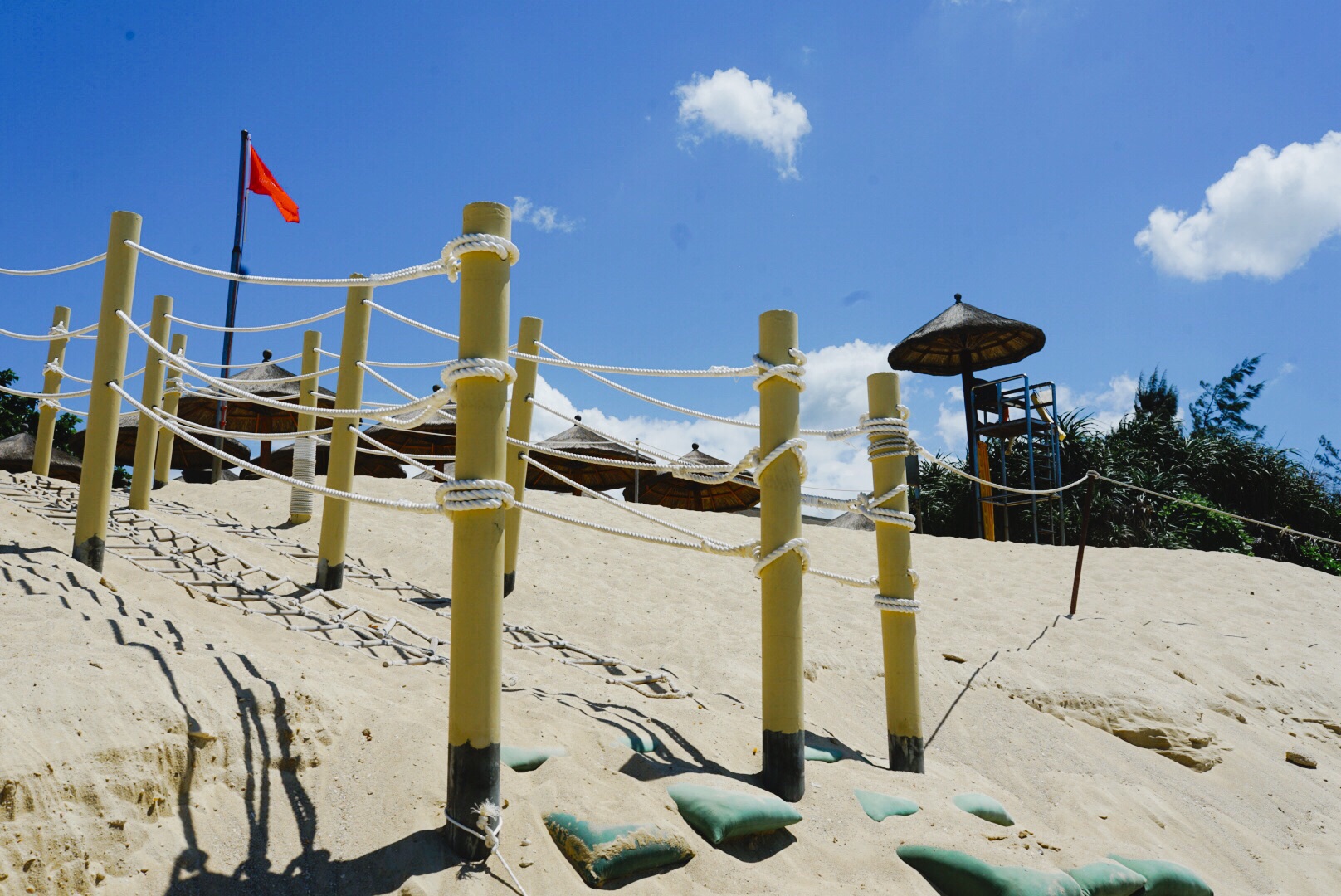 丽思位于游客人均密度最少的亚龙湾,各大五星酒店沿海边线分布。沙质细腻,干净,只是由于浪大,不能下去游泳。