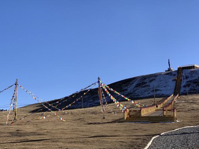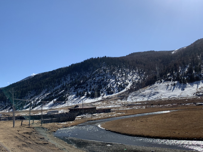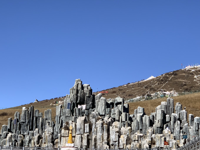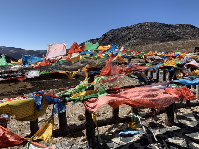 翻越海子山平均海拔4500米,最高峰果银日则海拔5020米,抵达香格里拉镇