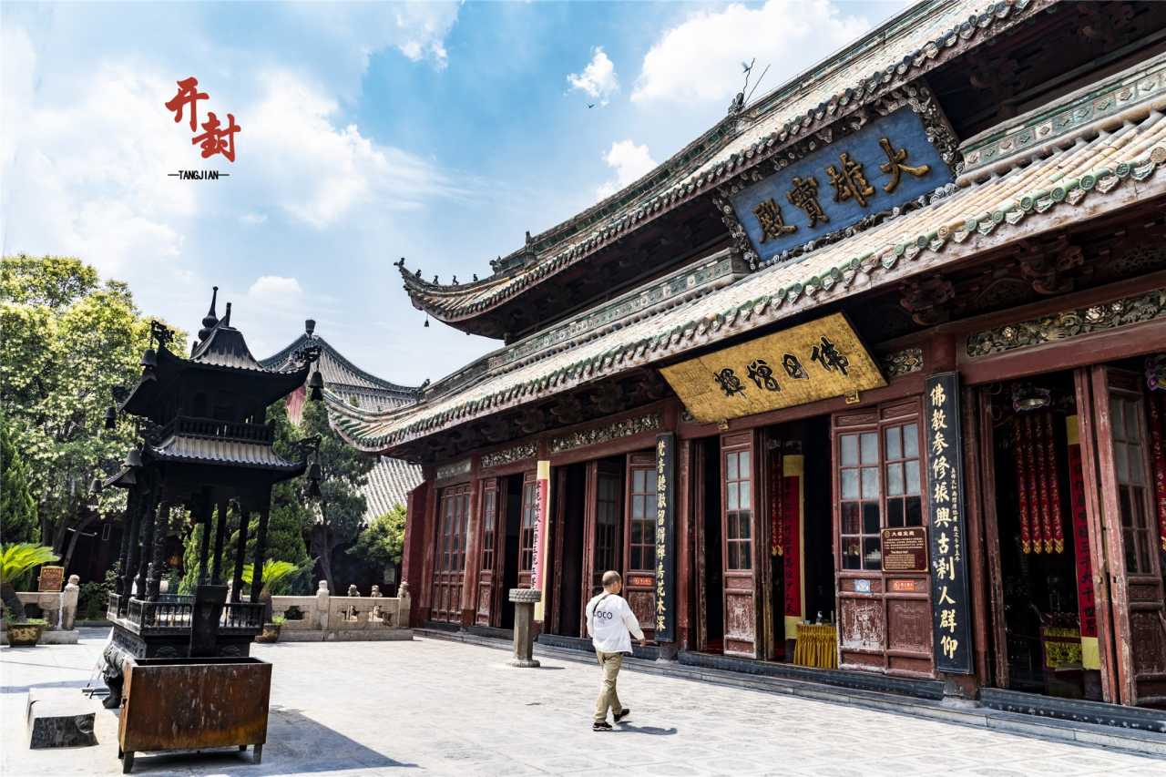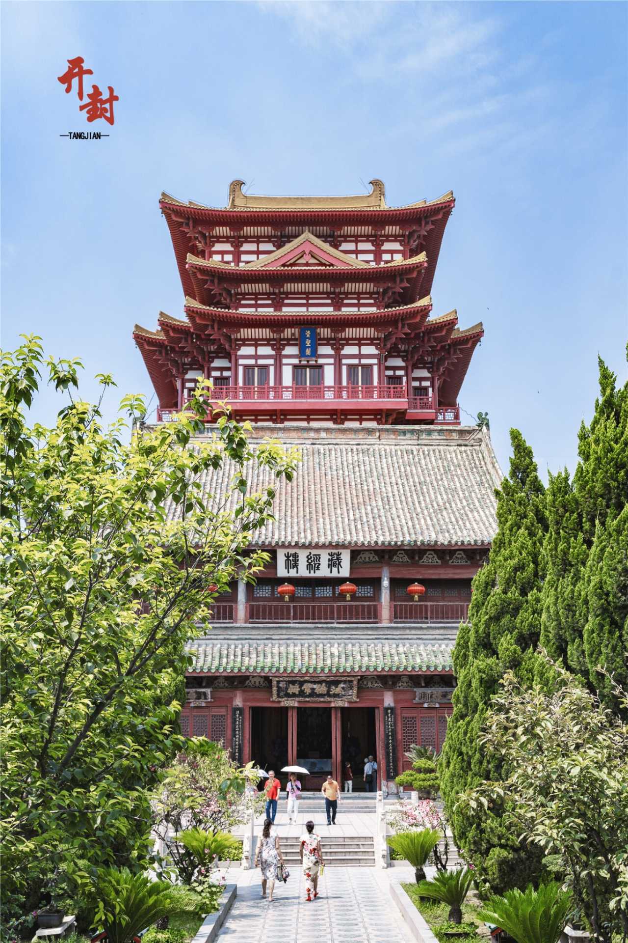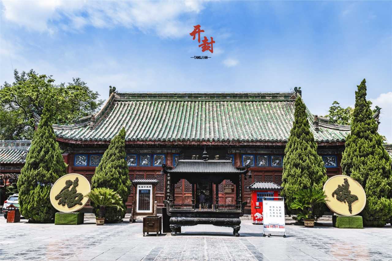 大相国寺,原名建国寺,是中国著名的佛教寺院,始建于北齐天保六年(555年),唐代延和元年(712年),唐睿宗因纪念其由相王登上皇位,赐名大相国寺。北宋时期深得皇家尊崇,多次扩建,是京城最大的寺院和全国佛教活动中心。后损毁,到清康熙十年(1671年)重修。现保存有天王殿、大雄宝殿、八角琉璃殿、藏经楼、千手千眼佛等殿宇古迹。寺内面积不大,由南向北依次参观即可。
