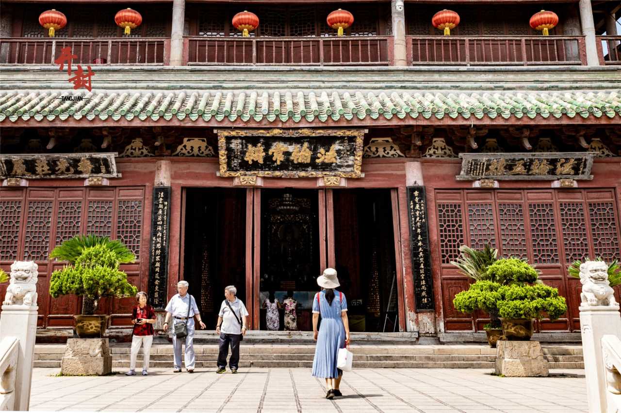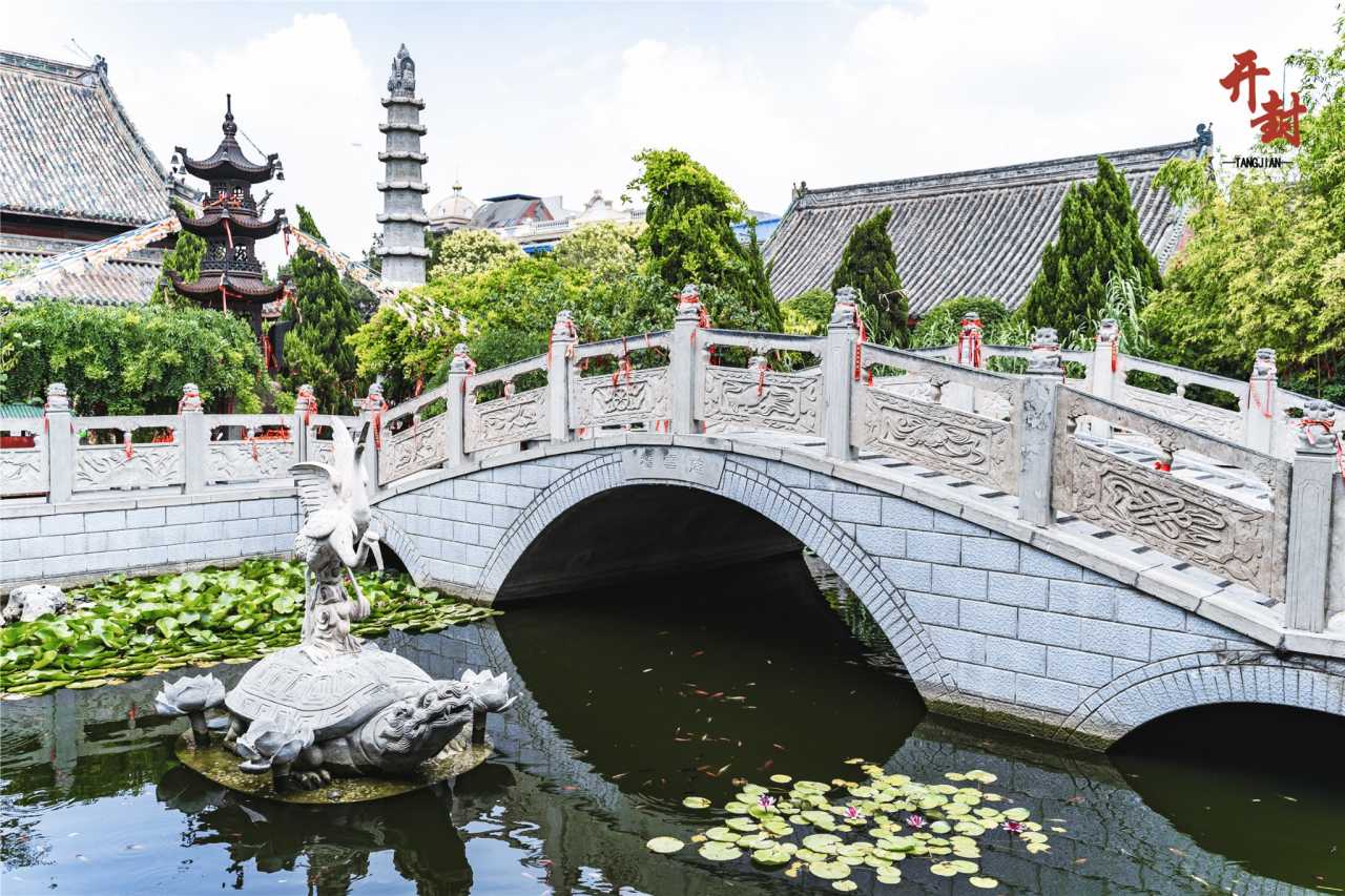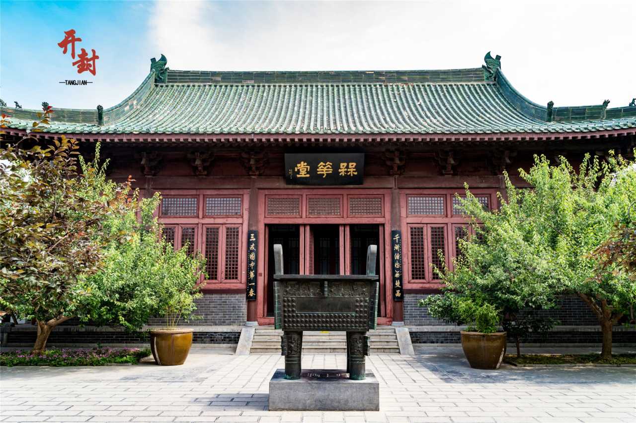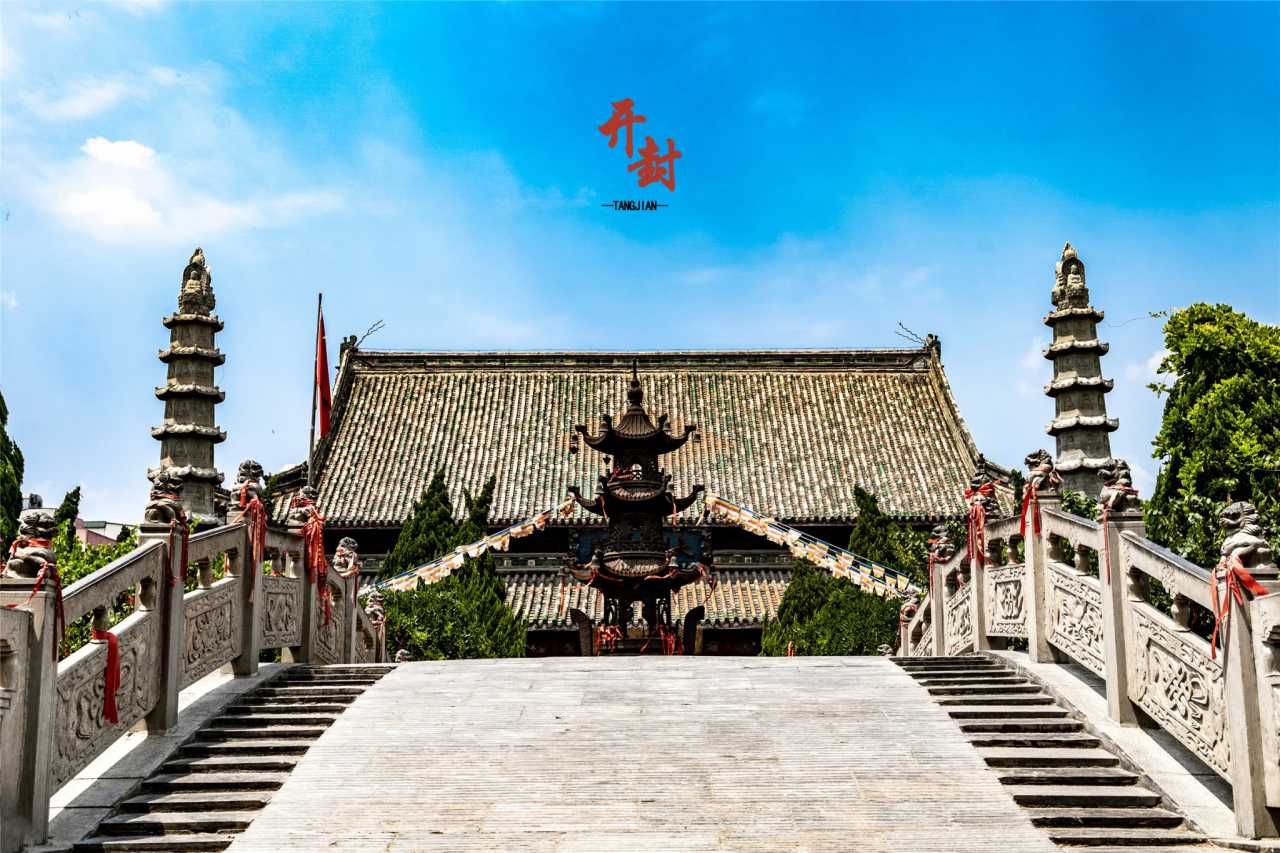 大相国寺,原名建国寺,是中国著名的佛教寺院,始建于北齐天保六年(555年),唐代延和元年(712年),唐睿宗因纪念其由相王登上皇位,赐名大相国寺。北宋时期深得皇家尊崇,多次扩建,是京城最大的寺院和全国佛教活动中心。后损毁,到清康熙十年(1671年)重修。现保存有天王殿、大雄宝殿、八角琉璃殿、藏经楼、千手千眼佛等殿宇古迹。寺内面积不大,由南向北依次参观即可。