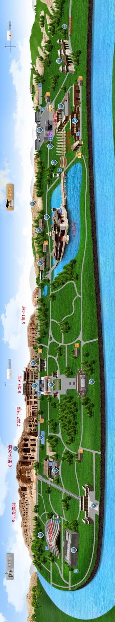 下面这张图来源于云冈管网,我在上面标注了重要的位置,请横屏观看按照序号1-10 依次游览就好,建议全程步行。