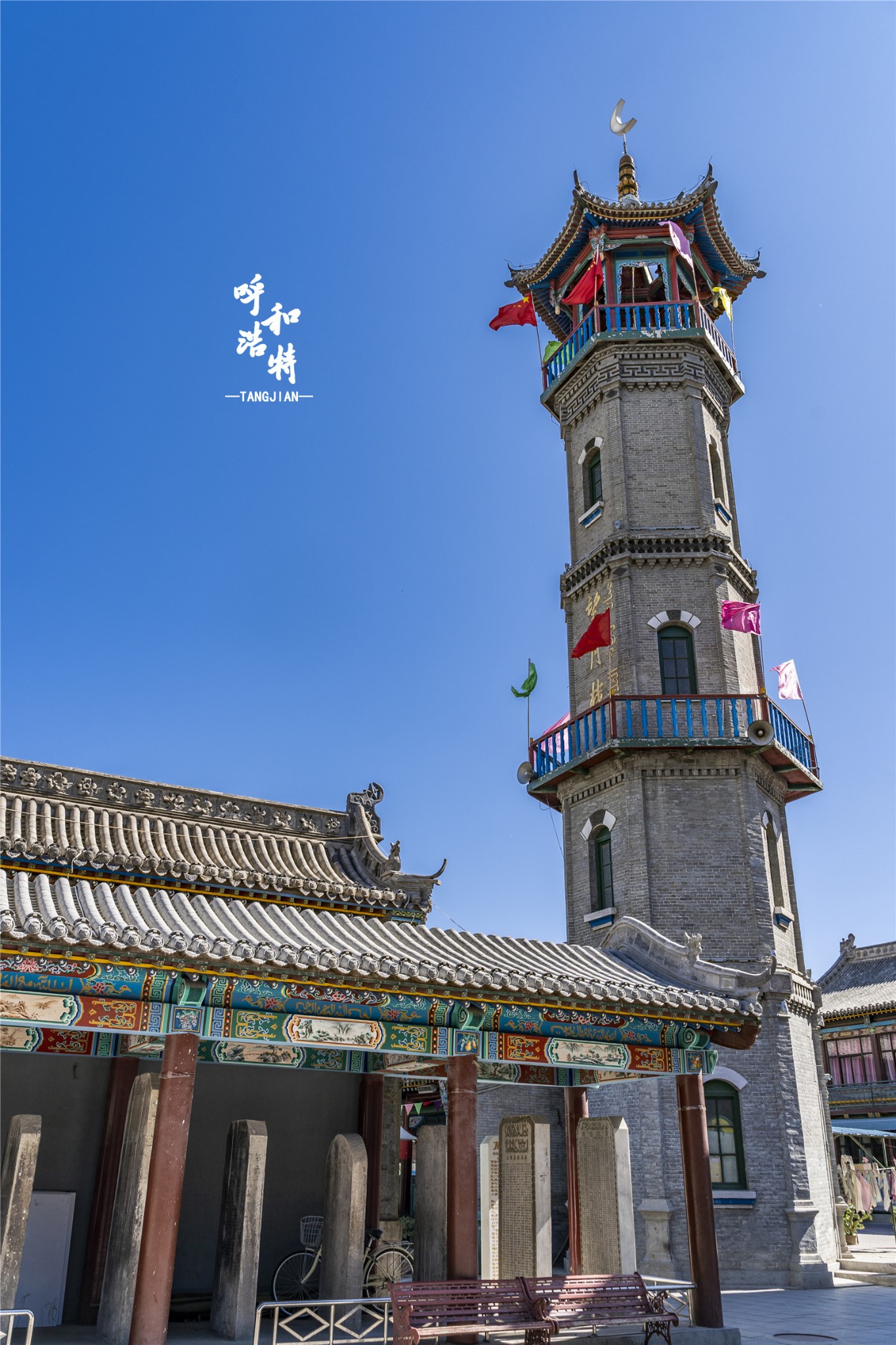 呼和浩特清真大寺位于回民区通道南街东侧,它是呼和浩特市原有8座清真寺中,建筑年代最早、规模最大的一座,建于清康熙三十二年(公元1693年),到乾隆五十四年(1789年)曾经重修。1923年,回族群众募捐再度重修后便形成了规模。1979年,政府拨款整修。