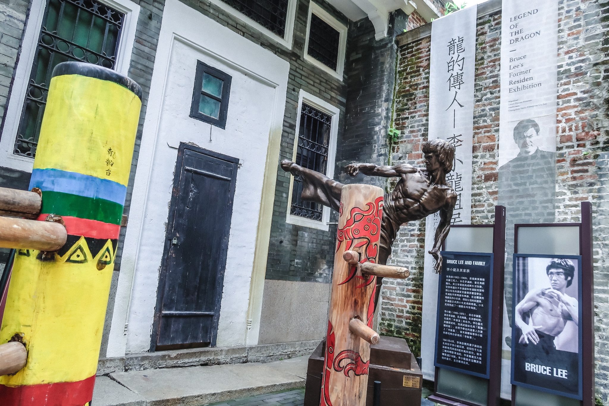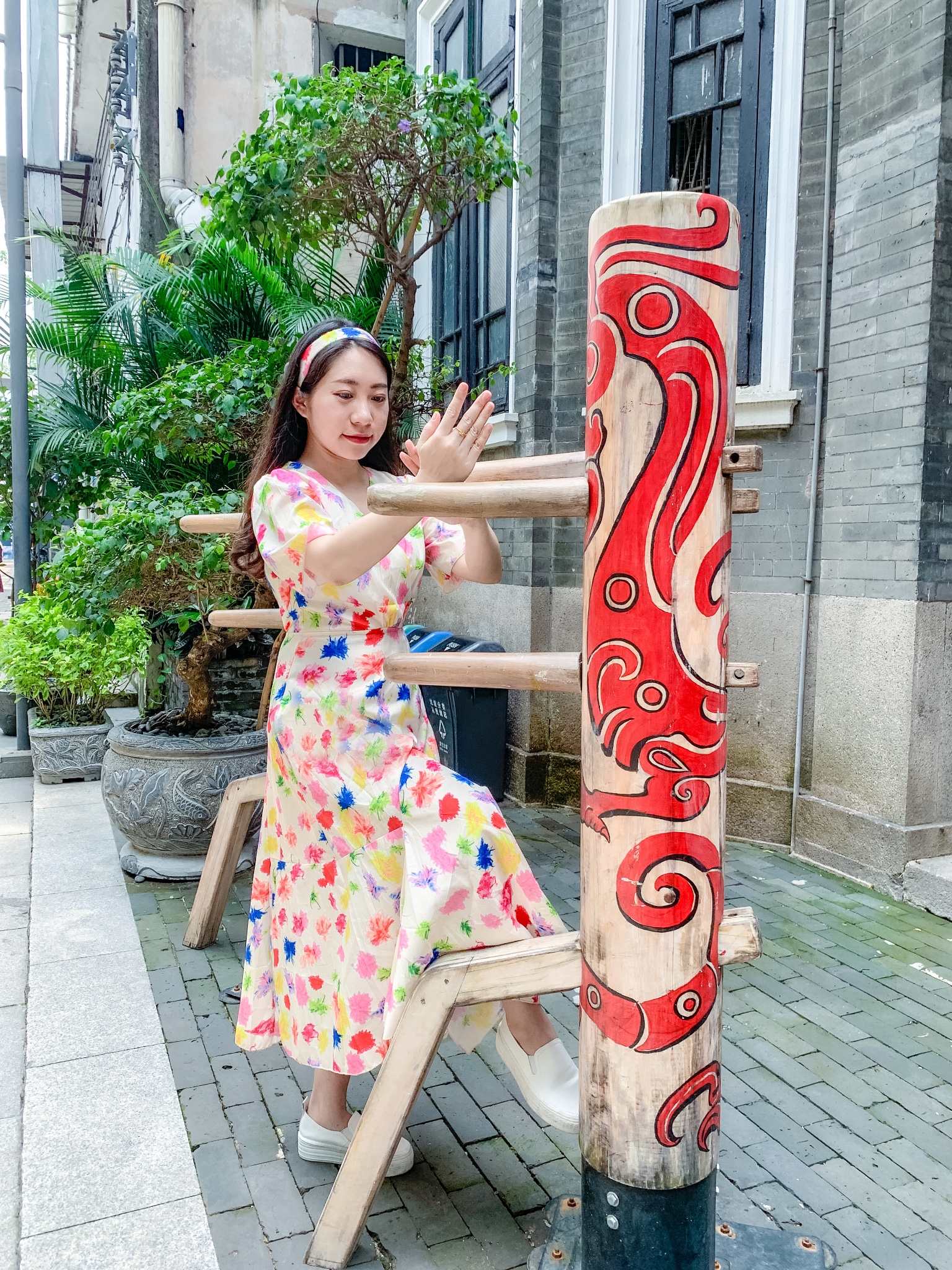 李小龙故居是砖木结构,花雕大梁,彩色雕花玻璃屏风间隔,极具西关风情。在这路咏春木桩是必不可少的元素,看着这些木桩就会让我忍不住想过去打几手,即使我压根不会打,但是摆摆造型,拍拍照还是很“威水”的。