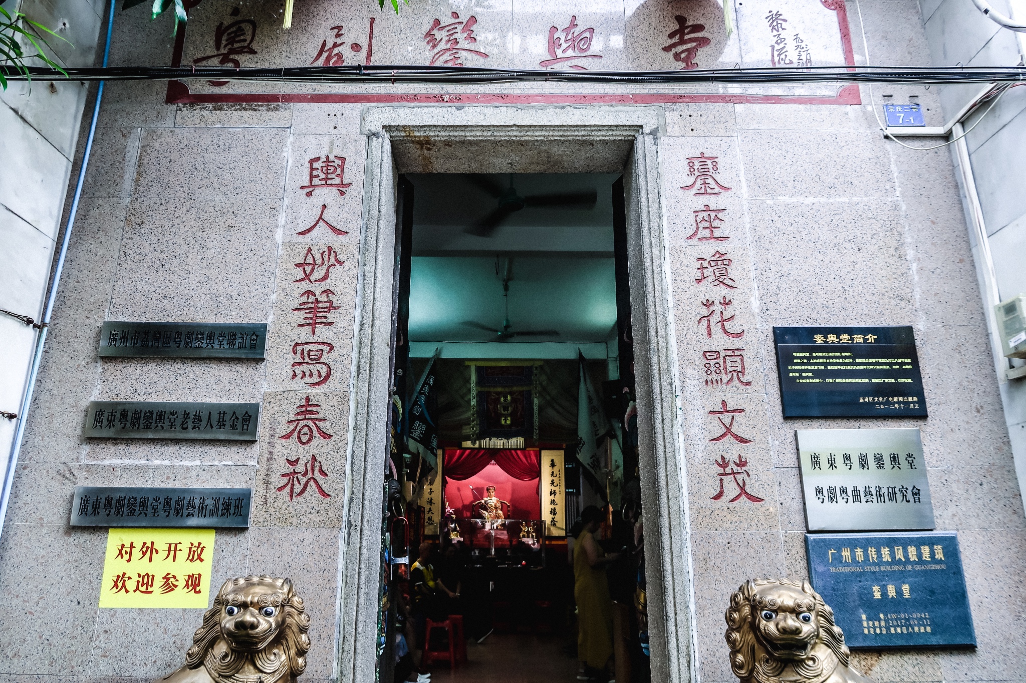 永庆坊内的粤剧銮舆堂,是广州粤剧文化的重要处所。低头麻石路,仰头黑瓦顶,老西关恩宁路里除了一直流传着粤韵风华,老西关们拿着大葵扇坐在粤剧銮舆堂里哼唱着粤剧小调,充满着人间生活气。