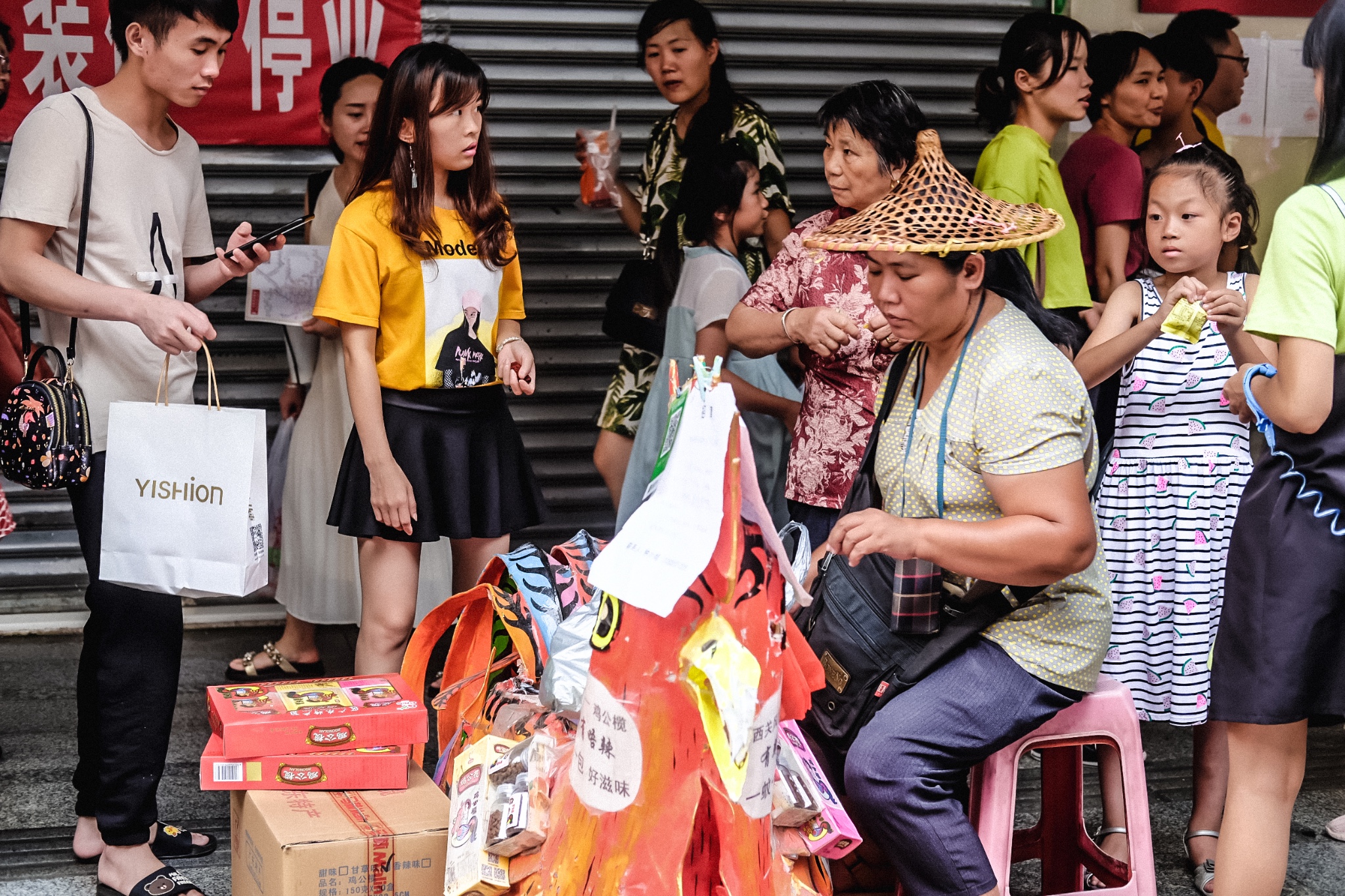 有那么一句玩笑话“广州走一走,必去上下九”,上下九除了众多美食店铺外,还有一个广州很独特的小吃在这里售卖。逛上下九,大家一定会看到一个头戴竹编帽,背着一只公鸡的人。这个背着公鸡的人其实是在售卖鸡公榄。