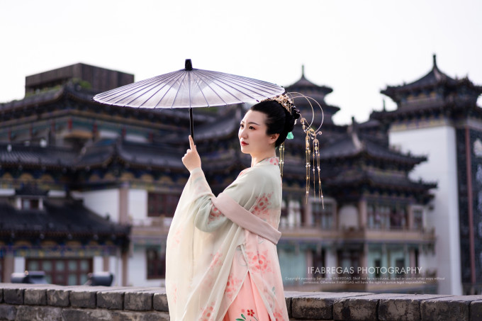 潘奶奶和大湿来南门这天是个夏天的大中午,阳光实在是太太太太晒了,我们决定先去别的地方,等太阳小些了再上城墙。为了更符合城墙古朴庄严的色调,潘奶奶选了一套复原的唐制齐胸,妆娘小姐姐还给我戴了刚刚到店的网红发冠,哇这个发冠真是不得了,美是很美,重也是真重。