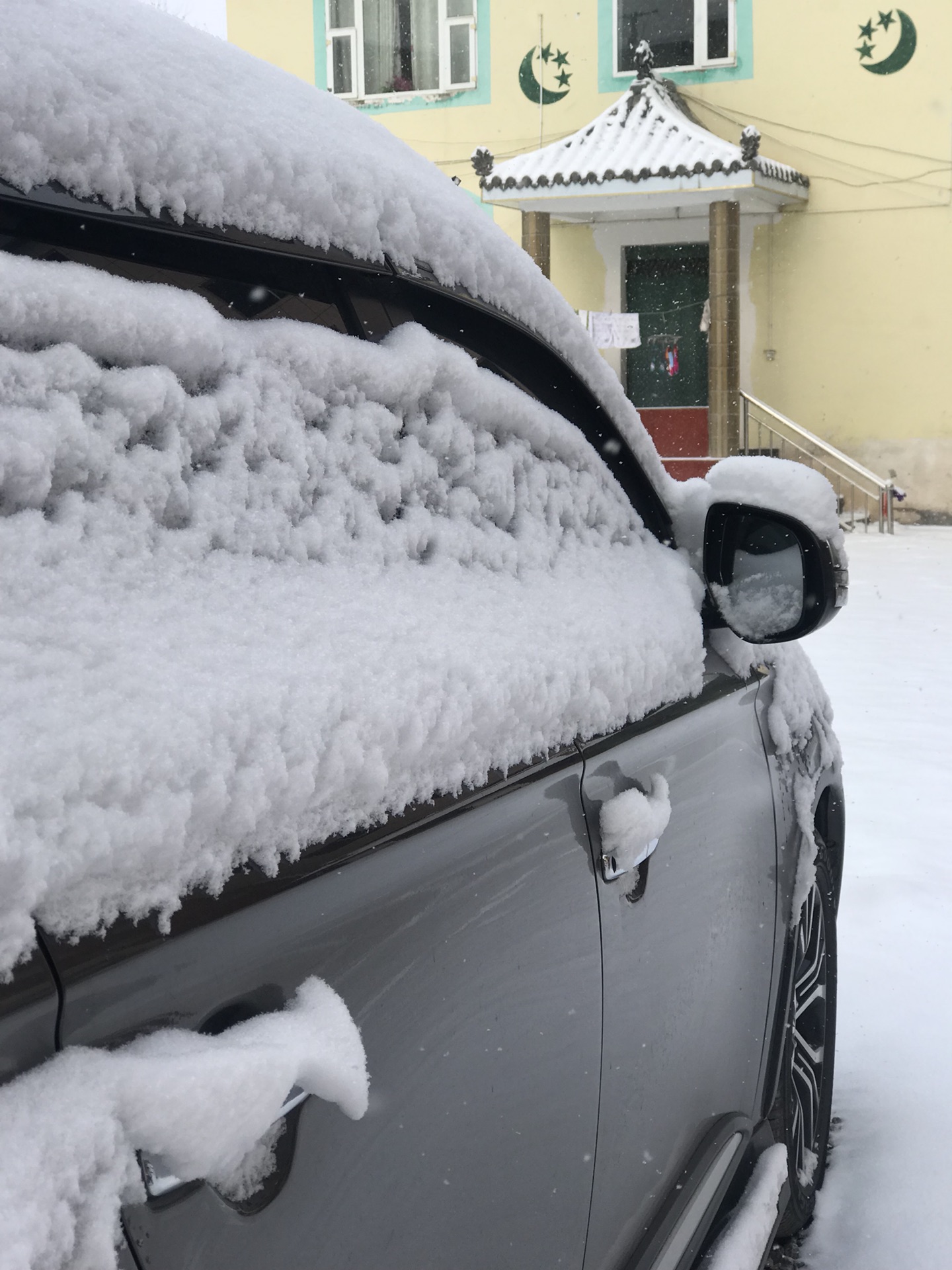 雪下了一夜,第二天一早出酒店看着积雪,真的可以用欣喜若狂来形容阿拉们,恨不得一头栽进雪里打滚儿,看看阿拉们的车就明白了!