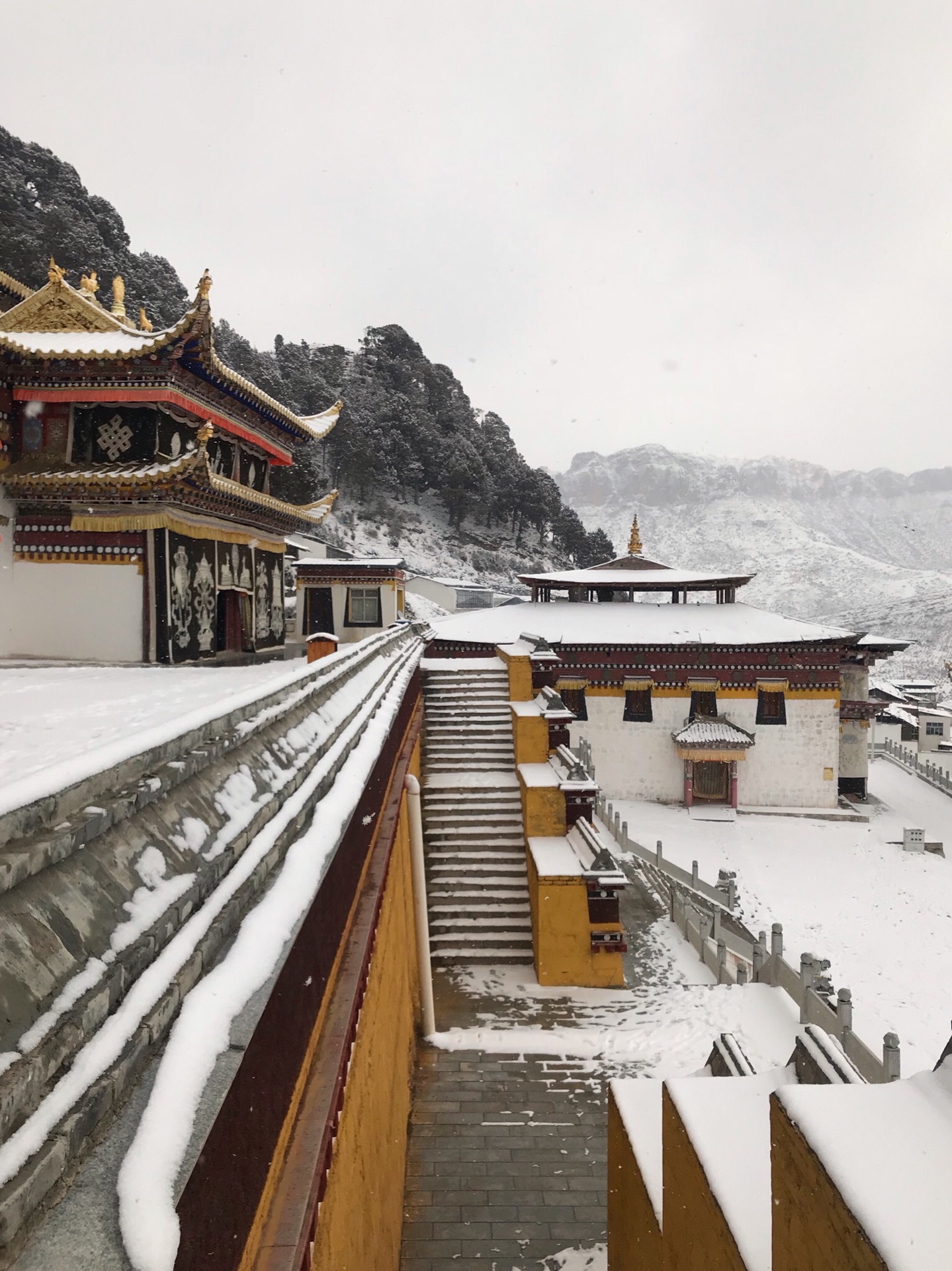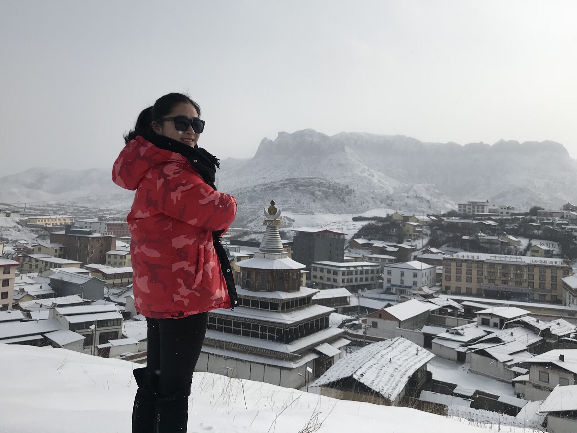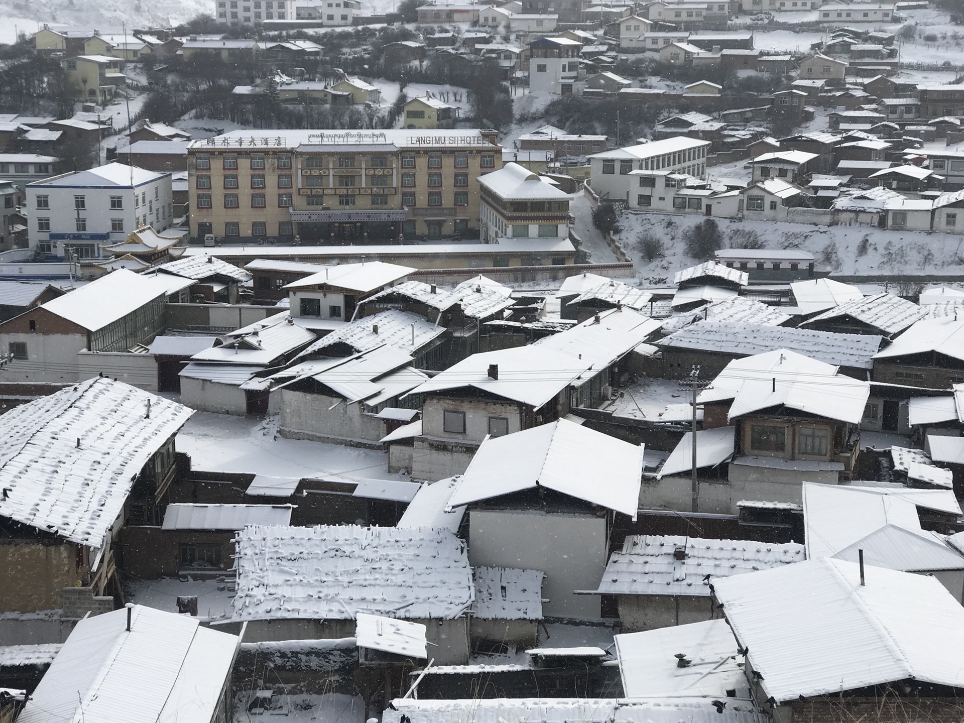 一路上都在祈祷郎木寺下大雪,果真晚饭出来,走在街上,郎木寺下起了大雪,兴奋不已(毕竟阿拉生活的城市重庆几乎不下雪)。