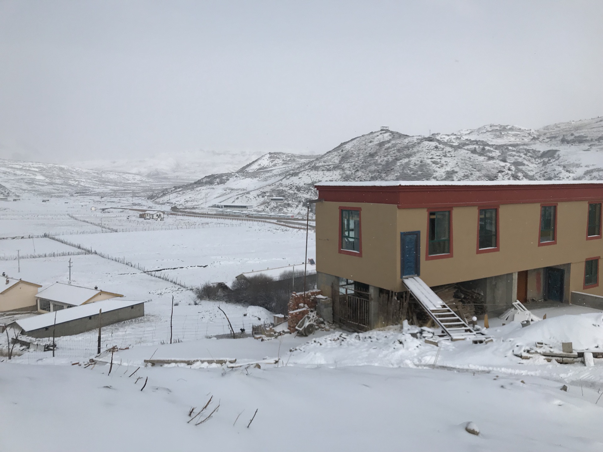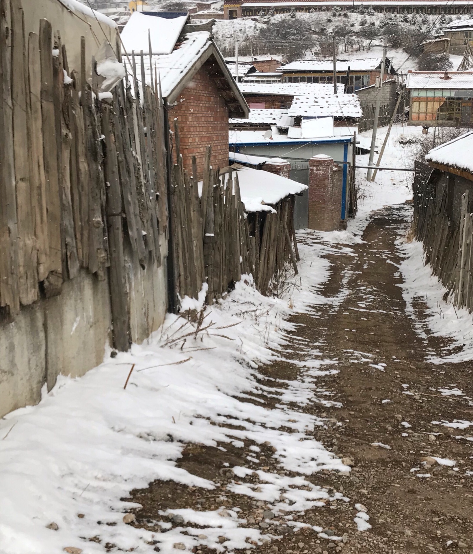兴奋的人早已忘记了高反,忘记了寒冷,满足了自己对于冬天大雪的渴望!一座座小房子??像积木一样堆砌,如童话世界一般。