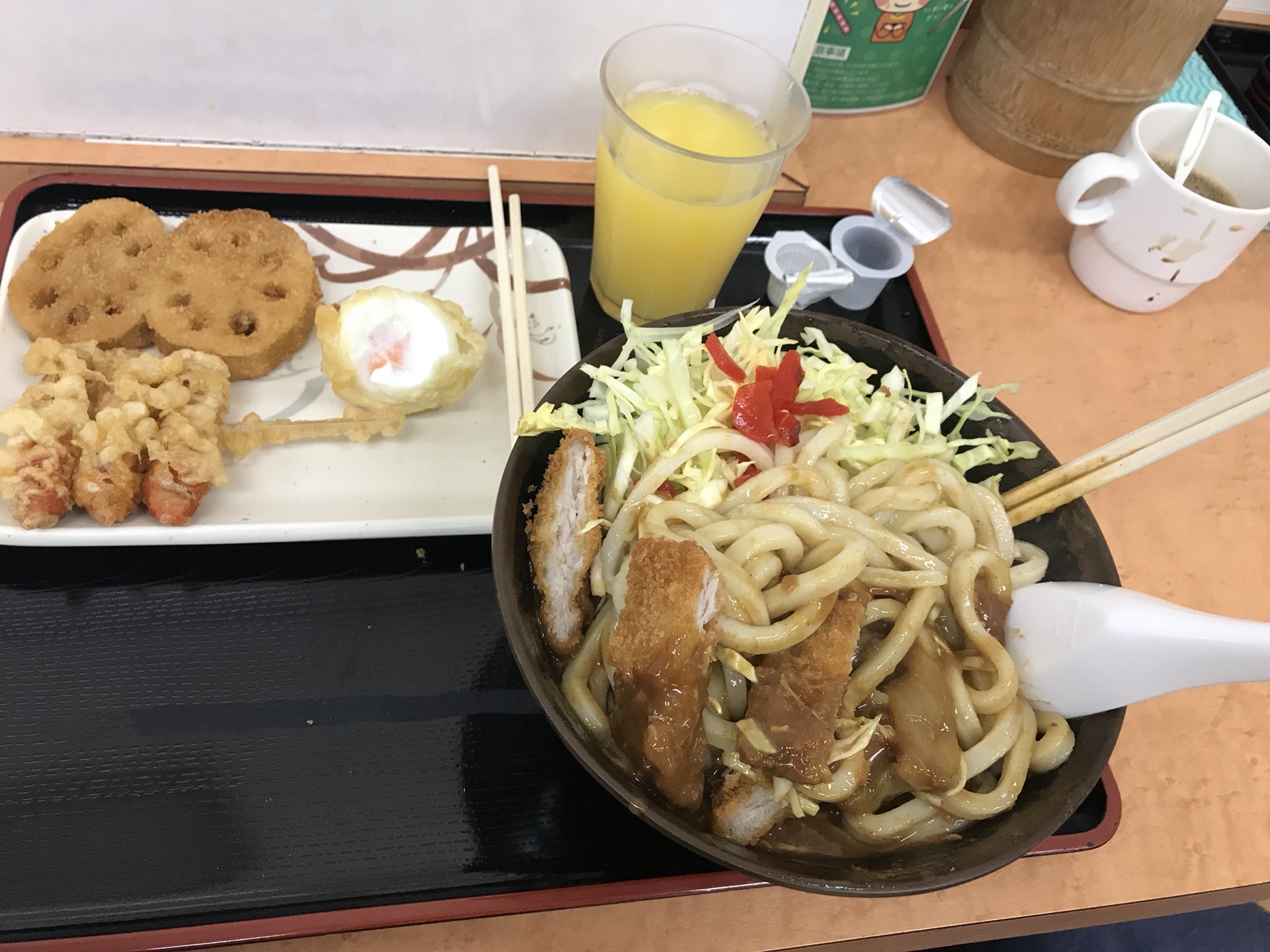 到达多米酒店后寄存了行了,出去觅食。香川是乌冬面之乡,第一餐我们吃了咖喱猪排乌冬,面条筋斗爽口,猪排炸得脆脆的,咔滋一口非常满足。