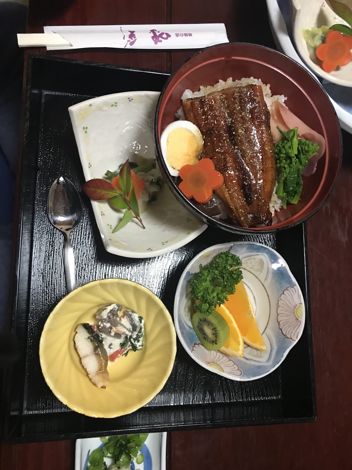 寄存了行李后已经是午餐时间,我们去酒店对面的一家店吃午餐,分别点了鳗鱼套餐和天妇罗套餐,1600日元一份。