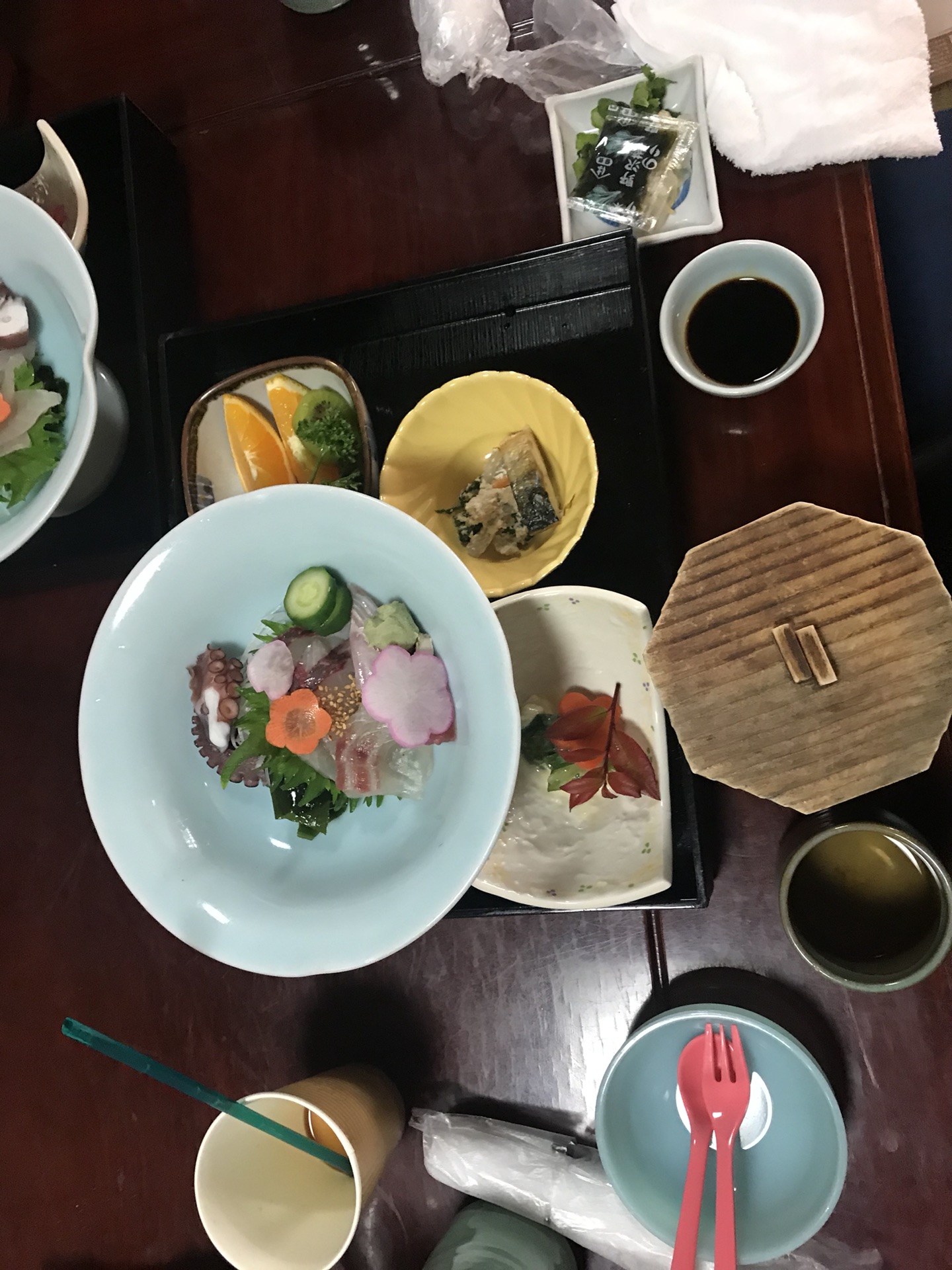 晚餐酒店提供会席料理,一道一道,吃了很久。
