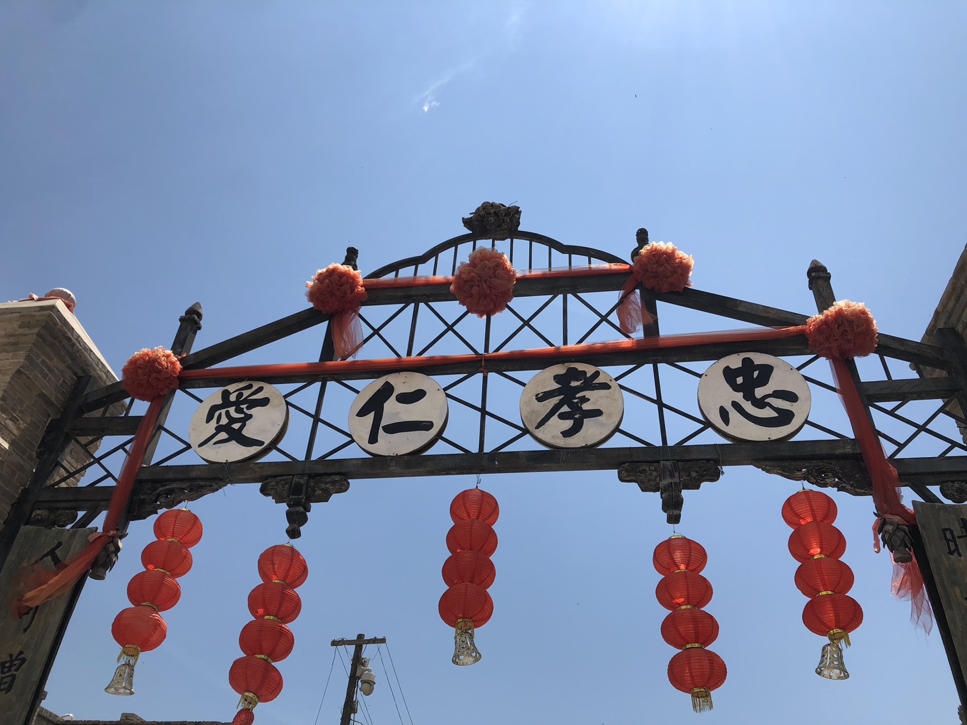 老银川一条街是一条仿民国时代的商业街。街里有很多小商店,主要是餐饮类的,我们的午饭就在这里原来的一家牛肉面店解决的。这个街里面的民国风不仅仅体现在建筑风格上,还体现在这条小街的文化底蕴上。街口的门楼上是这样的: