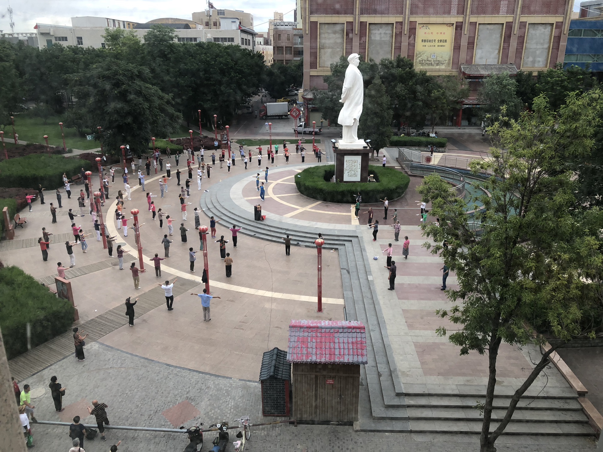 这次的旅程主要是银川和中卫两个城市。遵循一向喜欢住在城市中心凑热闹的习惯,在这两个城市的住宿,都选择了当地鼓楼附近。感觉有鼓楼的城市,附近应该都挺繁华的。比如中卫市里这个广场就在酒店窗外,每天定时定班有各个广场舞团体。
