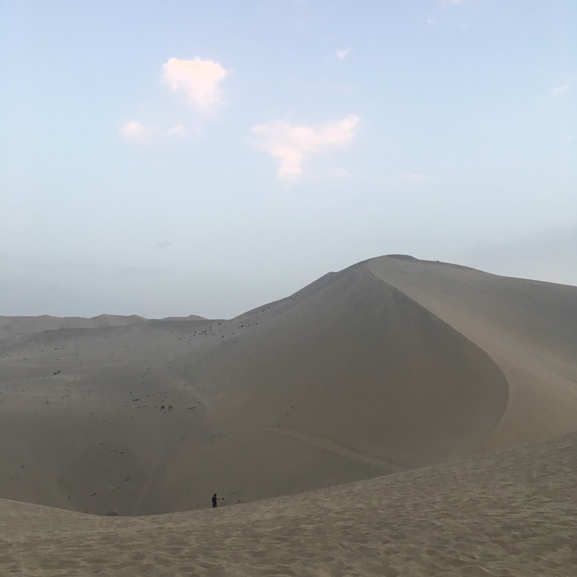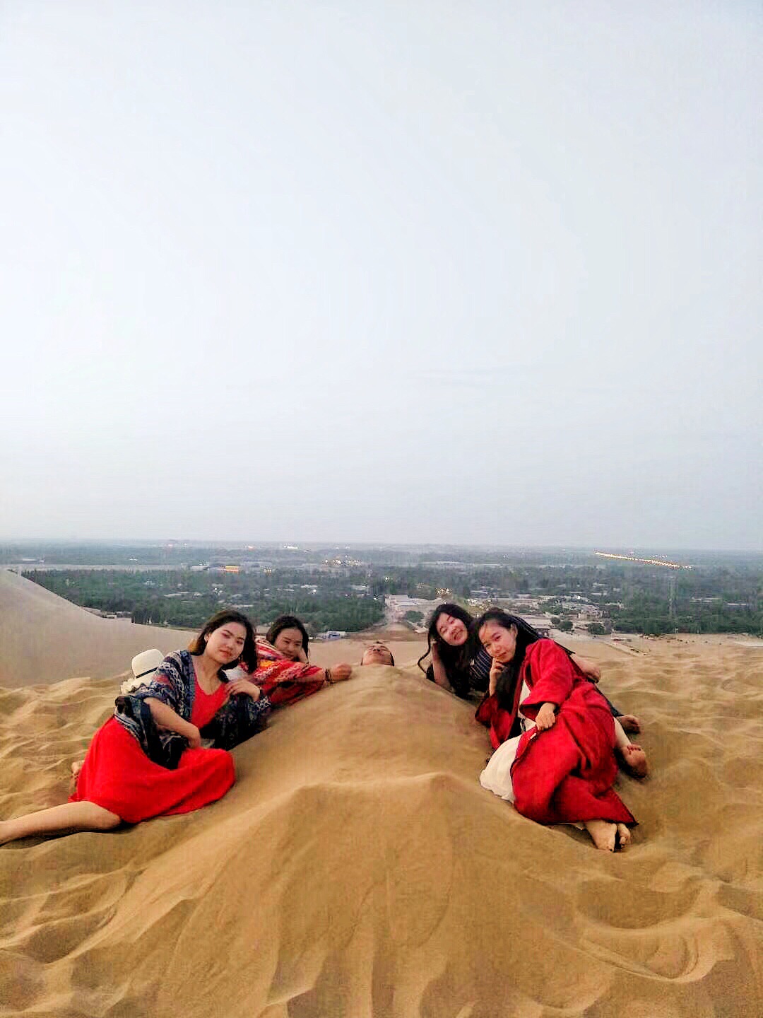 鸣沙山是我们玩的最嗨的景点了,沙漠的味道,虽然阳光不是很好,但是沙子细软给我们带来了很多趣味,最后还拿瓶子装了一瓶沙子带回家了。三毛说过,我每想你一次,天空就会落下一粒沙,从此形成了撒哈拉。沙漠也是如此的浪漫