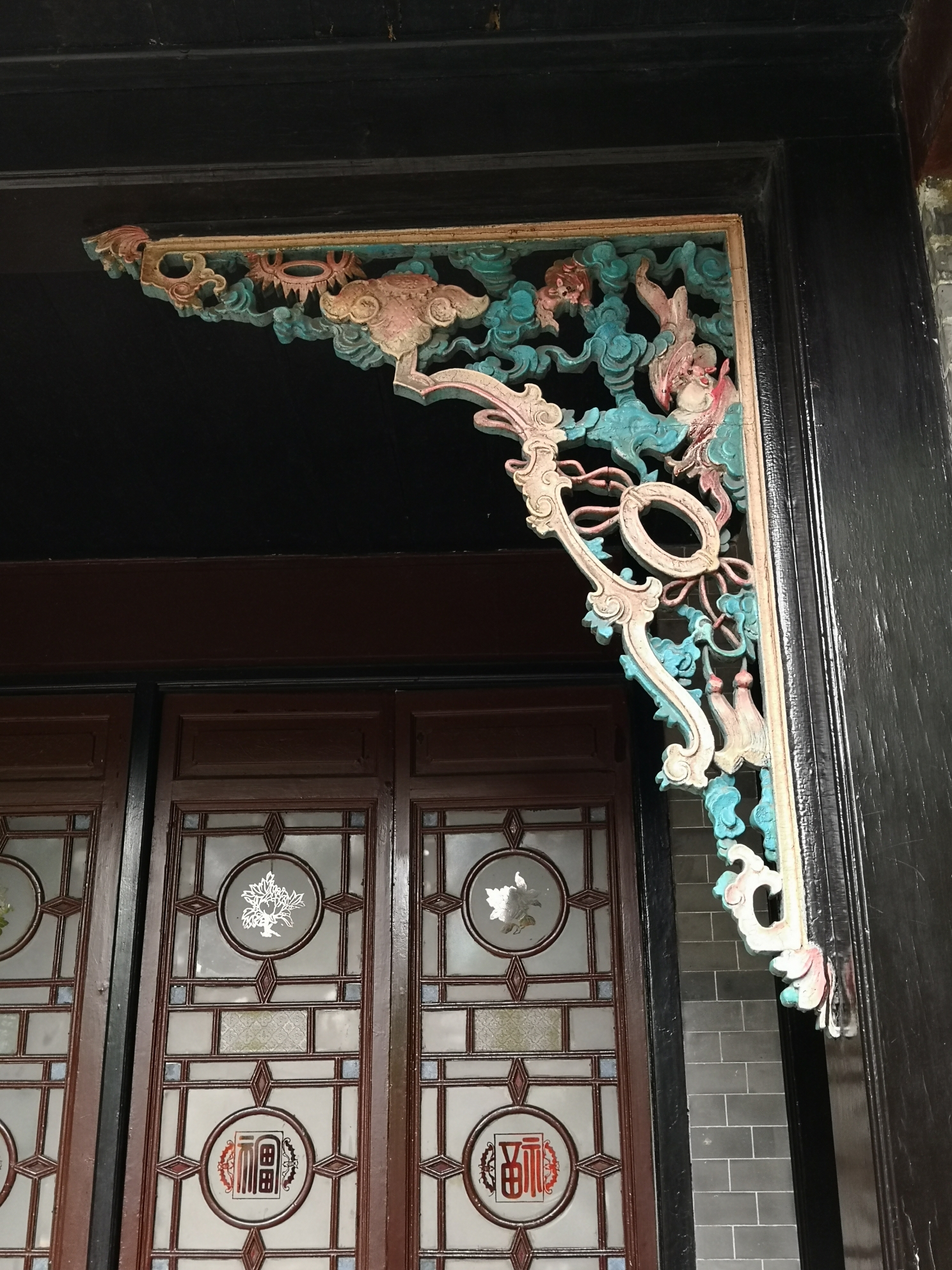 笔生花馆,命名出自“梦笔生花”典故,意寓学业有成,文才出众。该建筑物为砖木结构一厅两室平房,风格淡雅古朴。西窗上灰塑画《苏武牧羊图》为百余年前古物。