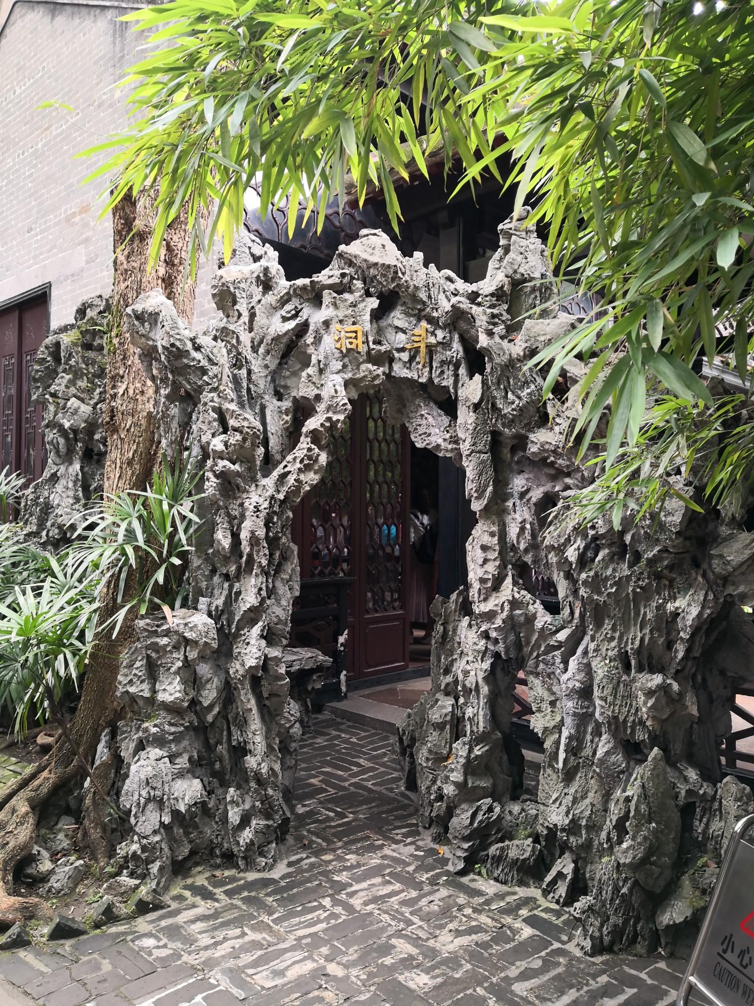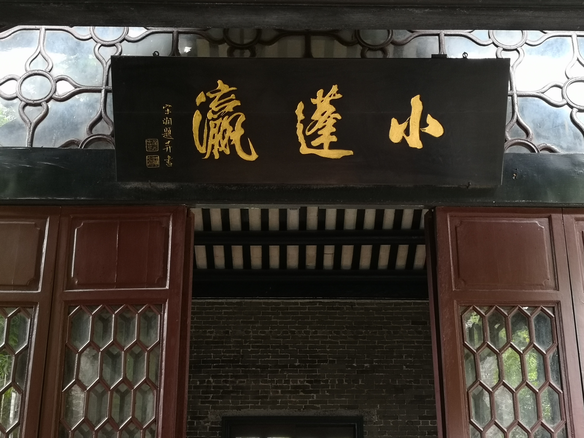 小蓬瀛,这三个字大有学问。“小”是岭南庭院的特色,以小见大,一座假山就是连绵群岭,一片小院就是无限风光;蓬瀛为蓬莱、瀛洲合称,古代三座仙山分别为蓬莱、瀛洲、方丈,而此处独占两山,可见古人心思的宏大。牌匾出自清乾隆年间著名诗人、书法家宋湘之手。