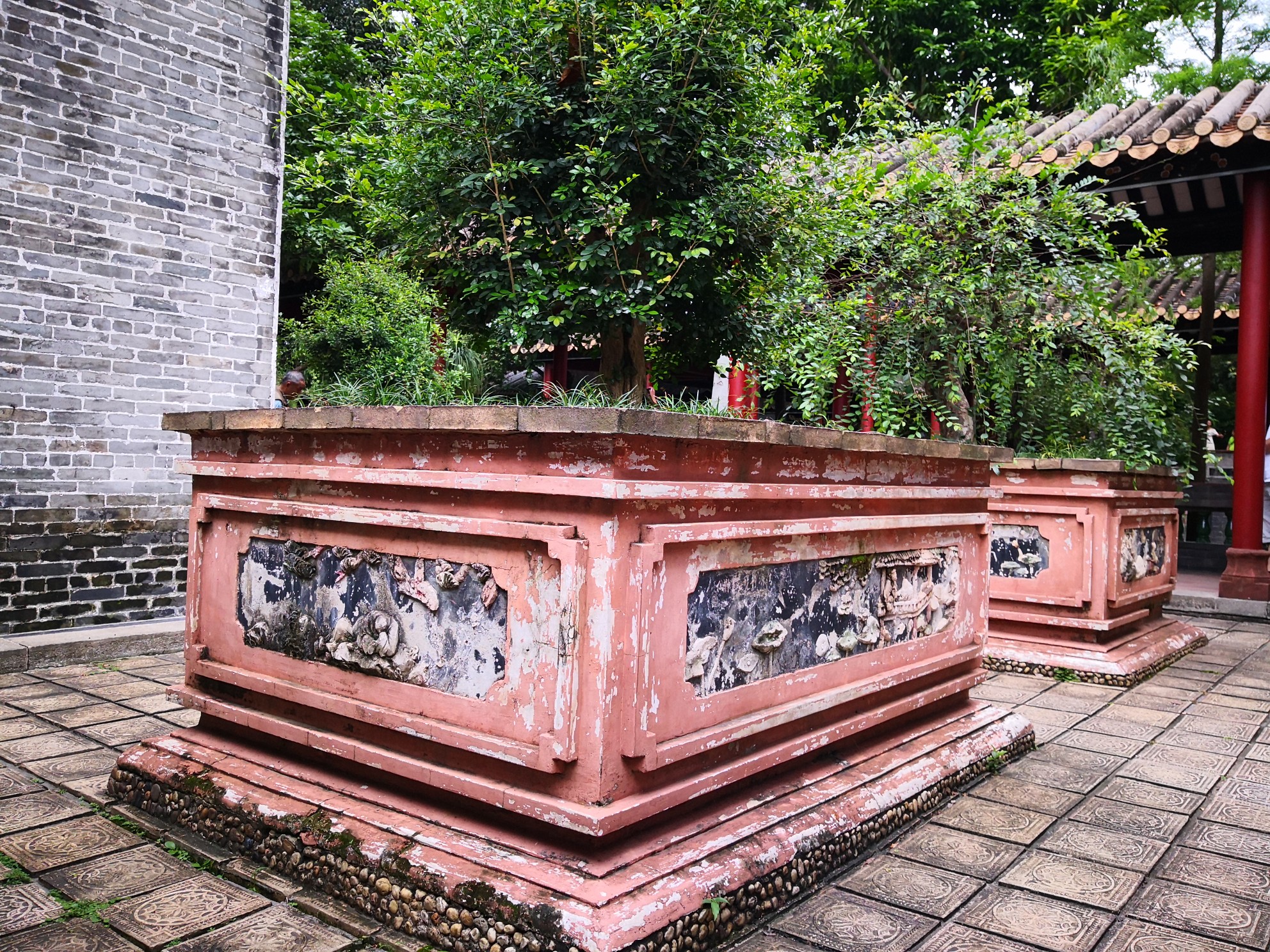 盆栽应该是古时候传下来的,褪色的红色显示出时光的痕迹。