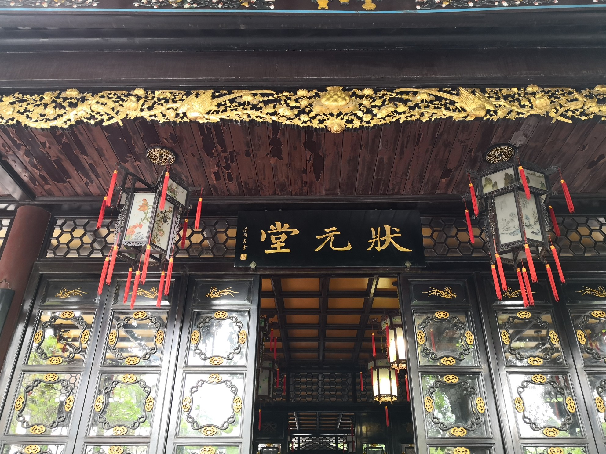 状元堂,正门上端“状元堂”三个大字,由清末杭州大书法家梁同书题写。张镇孙、黄士俊、朱可贞、梁耀枢,顺德大地上产生的四位文武状元仿若如文武星灼灼其华、熠熠生辉,映照出顺德在科举时代的斐然成就和文化底蕴。将龙嘉的私塾红蕖书屋辟为状元堂可谓思接千载,可让人在散发出浓浓书卷味的天地中涉足顺德的文化之旅。