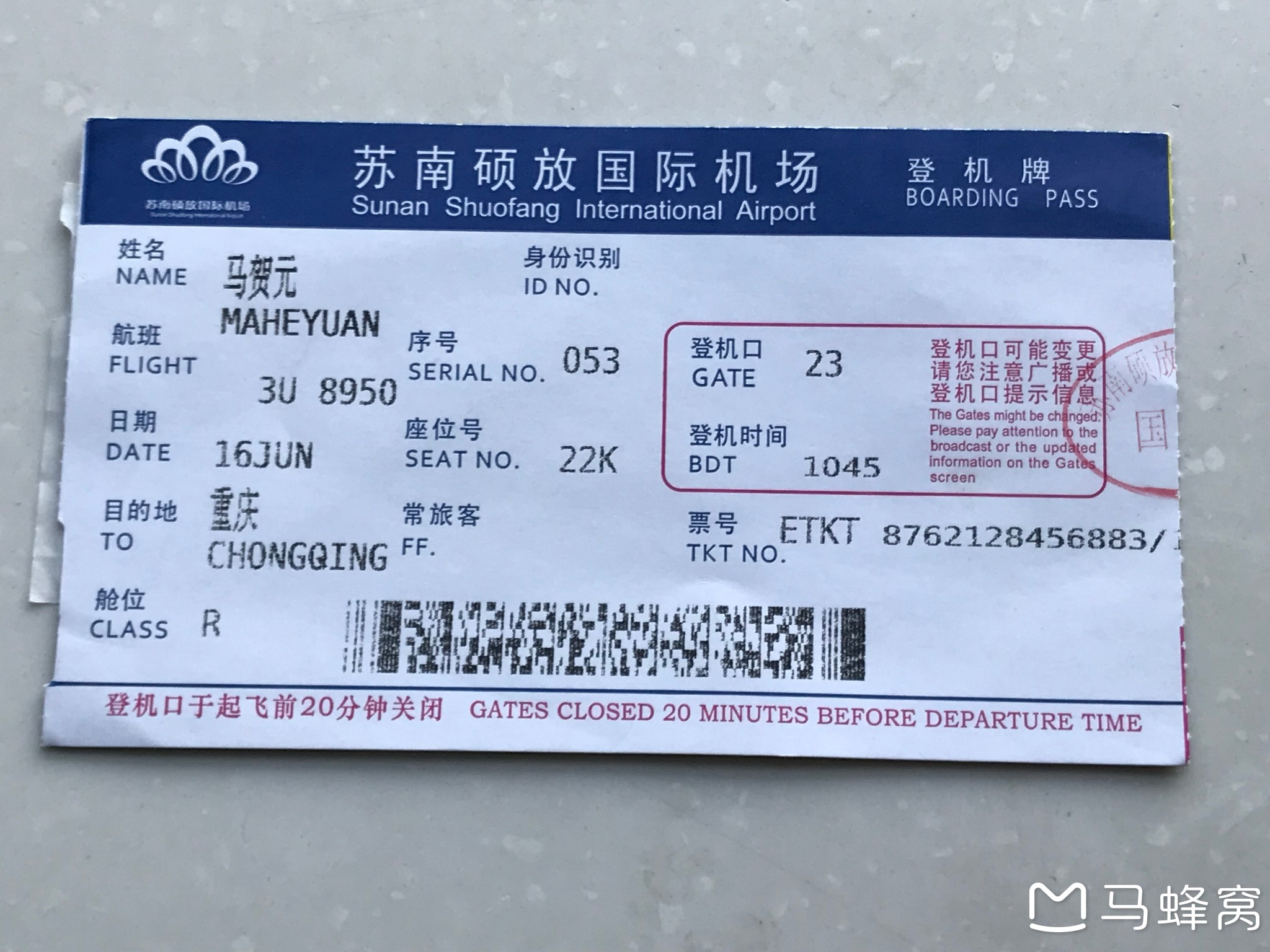 按照原定计划:我先乘坐专车抵达“江南的小上海”无锡(详情请见:江南的小上海——无锡,无锡自助游攻略 - 马蜂窝//www.achim-lelle.com/i/12583718.html),在这里搭乘(10:45)的飞机飞往重庆:
