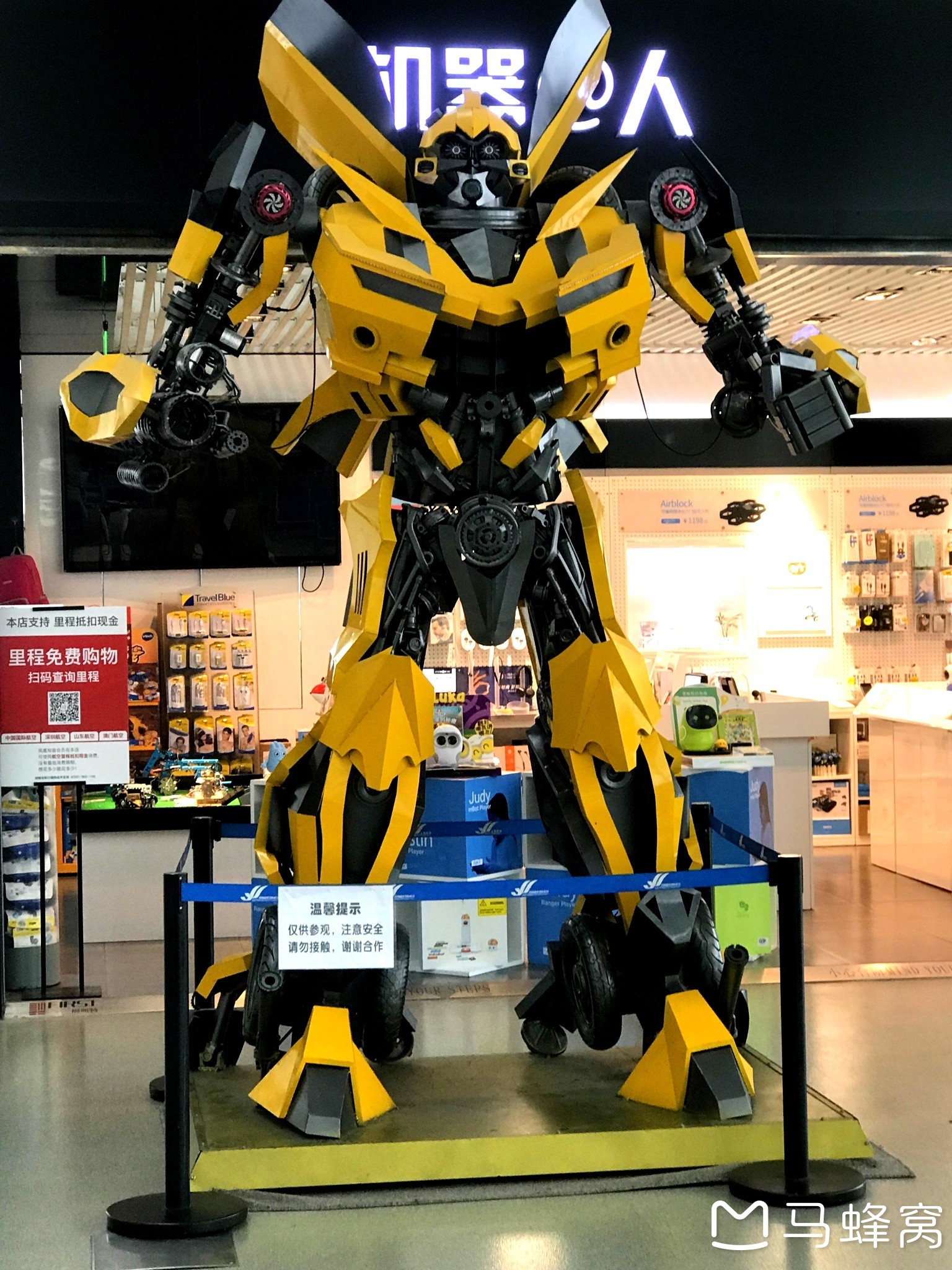 一具2m多高的大黄蜂模型,这可真说得上是一场意外的惊喜!我赶忙拿起手机将眼前的这一幕景象拍了下来。