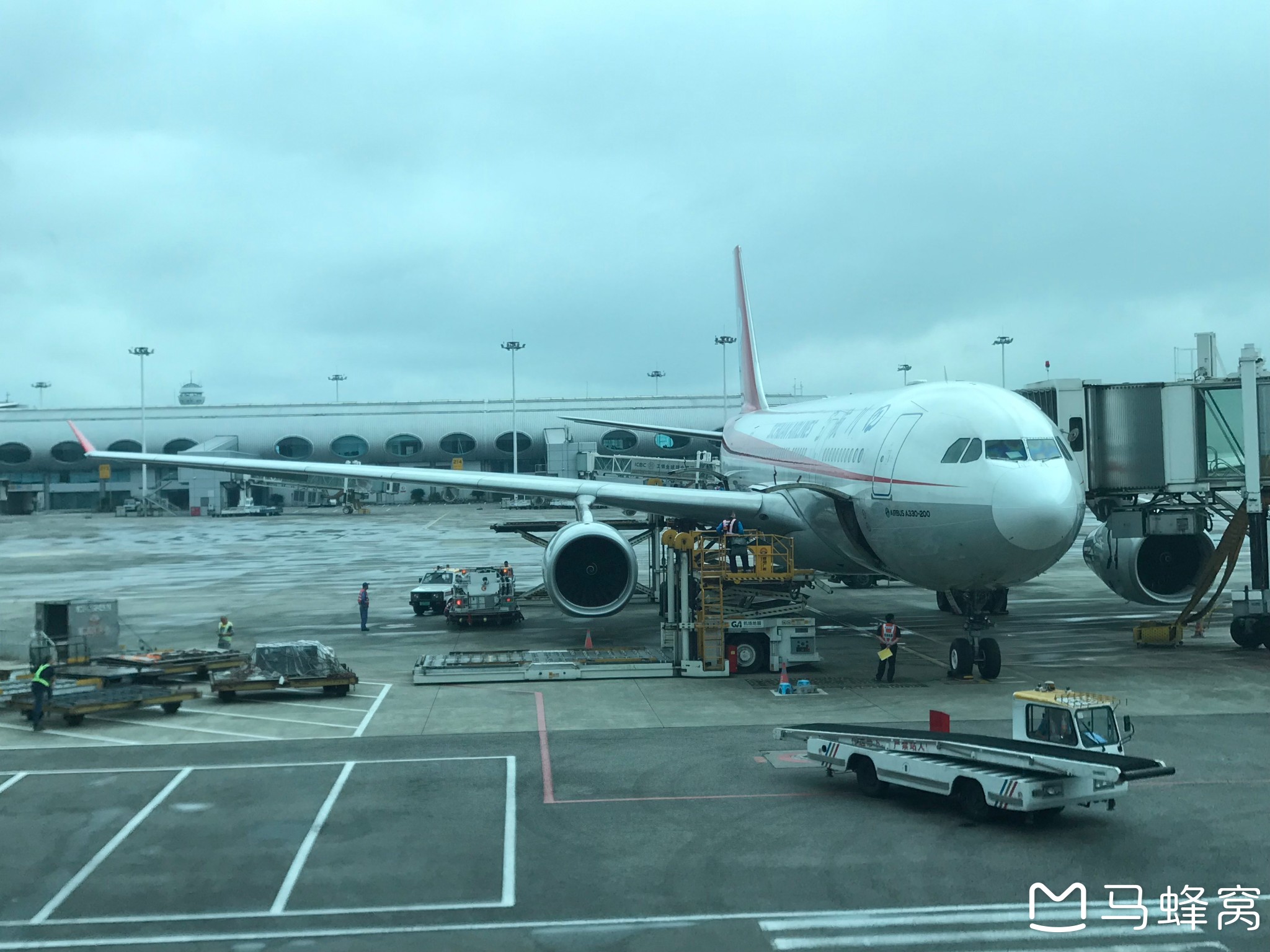 最后我们在15min后,顺利到达了渝北区的“江北国际机机场”,下飞机后,我透过登机台的玻璃拍下了我所乘坐的“空客A330”本尊: