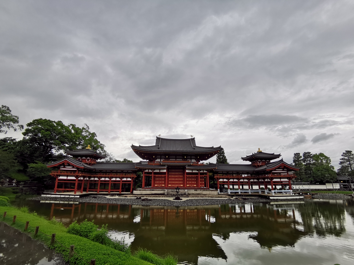 。出来后逛了平等院,这是一座日本人十分崇尚的寺院,在日本人心目中地位很高,供奉的是释迦牟尼佛,是接引人往生极乐的寺庙,寺庙多次因内战被毁以及年代久远而毁坏,这次去,正在修缮,国宝级的凤凰跟大钟都被挪进了博物馆。佛像也完全关闭不得见。还看到了很漂亮的飞天菩萨,跟敦煌一样的礼乐飞天菩萨是赞颂释迦牟尼佛同时一起接引极乐的。十分漂亮,现场还有投影复原视频跟历史介绍,很值得一看,由于寺内陈列不让照相,出来后可以在纪念品店买点明信片,还是很好看的。出来上车正好开始下雨,一路迎雨来到京都,雨又停了,哇嘎嘎,下车办理入住,不得不说斑马在日本的酒店掌控能力太强了,安排每家一间独栋别墅,两层楼,房间内温泉,淋浴,带烘干的洗衣机,电视,电磁炉微波炉一应俱全。房间格局完全是日式风格,进门玄关,超经济卫生间,榻榻米跟床铺,哈哈同行的哥们直接说不走了,就在家待着不出去了。